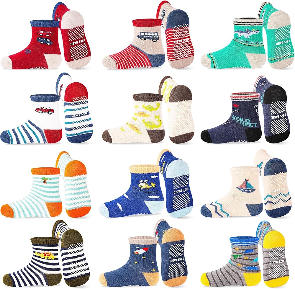 • Sizes and Styles: 12-pair set of toddler' socks for daily variety. Available in three sizes 1-3 years, 3-5 years, and 5-7 years.