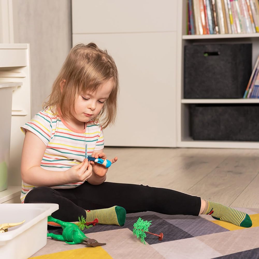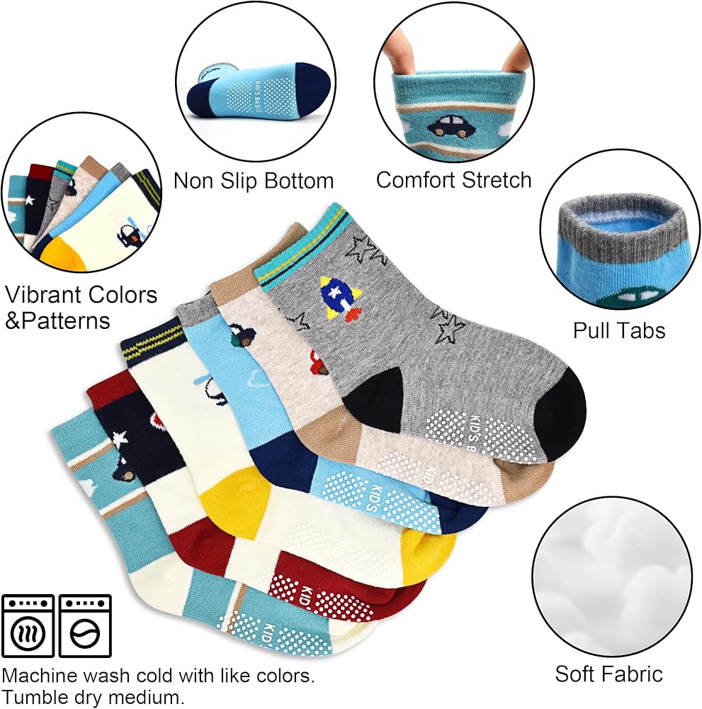 • Fun Patterns: Each pair features playful cartoon designs like dinosaurs, cars, or airplanes. Bright, safe colors stimulate your baby's visual development, turning sock-time into a daily delight.