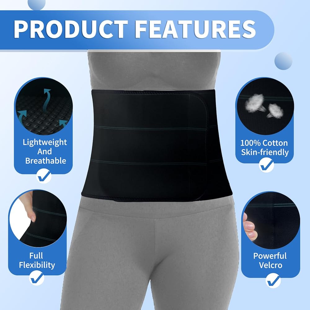 تسريع التعافي - يعمل حزام شد البطن على تثبيت الجزء الأساسي من جسمك ويحسن لون العضلات ويوفر ضغطًا موزعًا بالتساوي على مناطق البطن وأسفل الظهر وأسفل الظهر. يعمل الشريط على تحسين الدورة الدموية ومستويات الأكسجين، مما يقلل من التورم ويعزز الشفاء. يخفف ويمنع بعض مضاعفات جراحة الفتق، وجراحة السمنة، وما بعد استئصال الرحم، والحمل بعد الولادة.