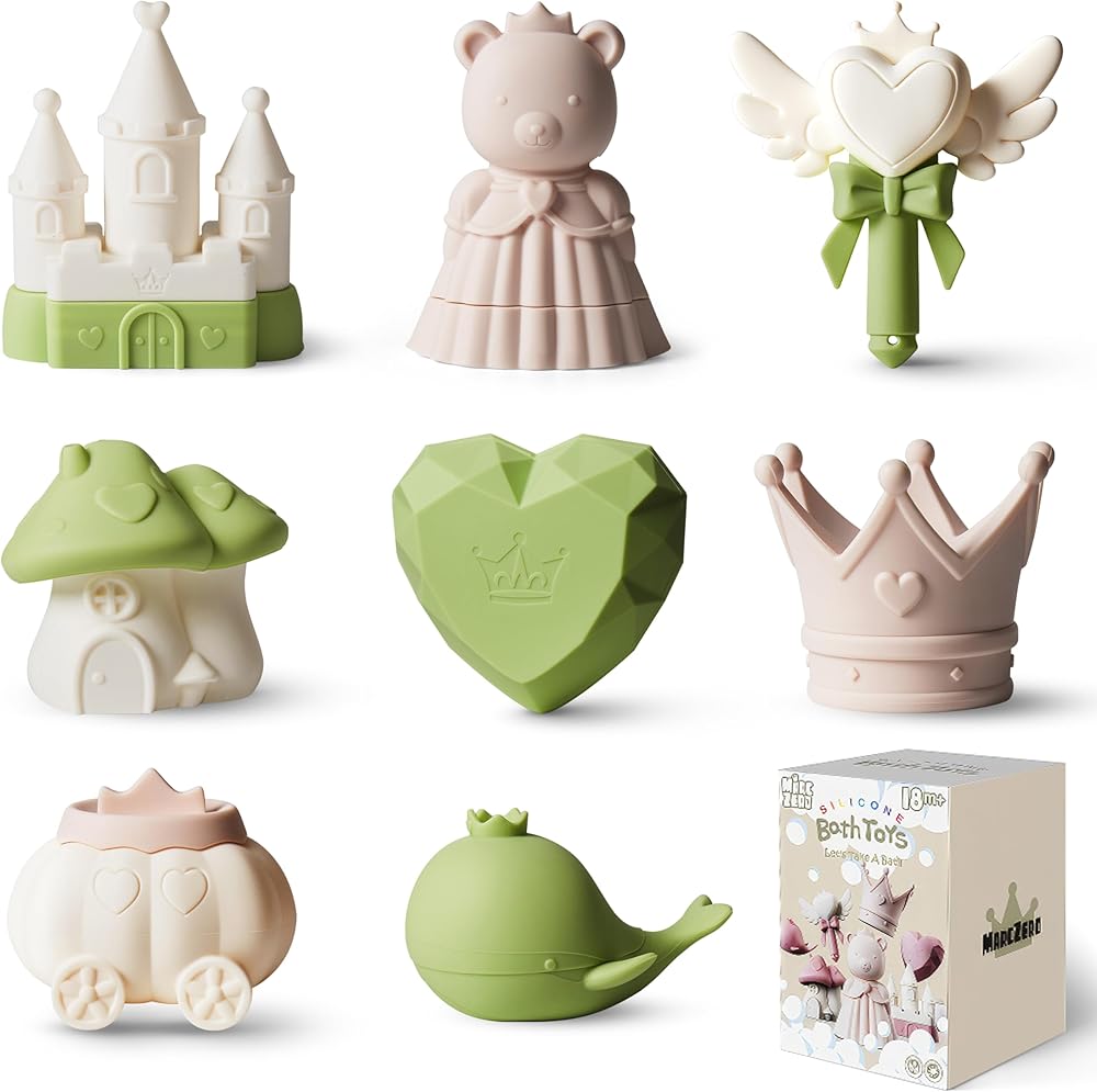 تحويل وقت الاستحمام إلى حفلة أميرة مجيدة! مجموعة لعب الاستحمام مارك زيرو المكونة من 8 قطع بطابع الأميرة، بألوانها الناعمة وتصميماتها الرائعة، تثير خيال طفلك على الفور. من السهل على الأيدي الصغيرة الإمساك بألعاب السيليكون الناعمة، وتشجع مجموعة القطع المتنوعة على لعب الأدوار والمغرفة والصب، مما يحول الحوض العادي إلى مملكة خيالية مليئة بالضحك سيحبها كل طفل.