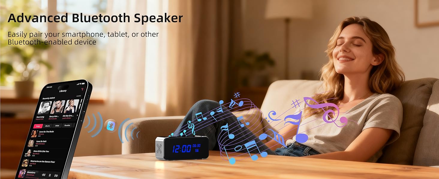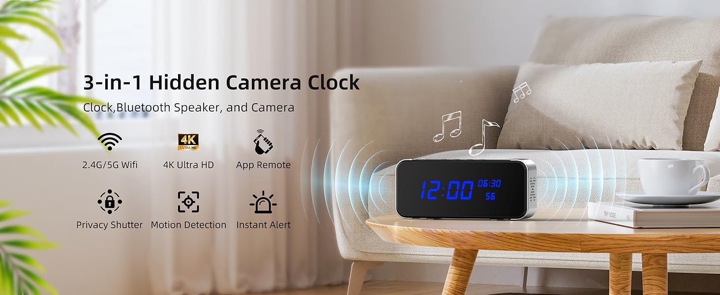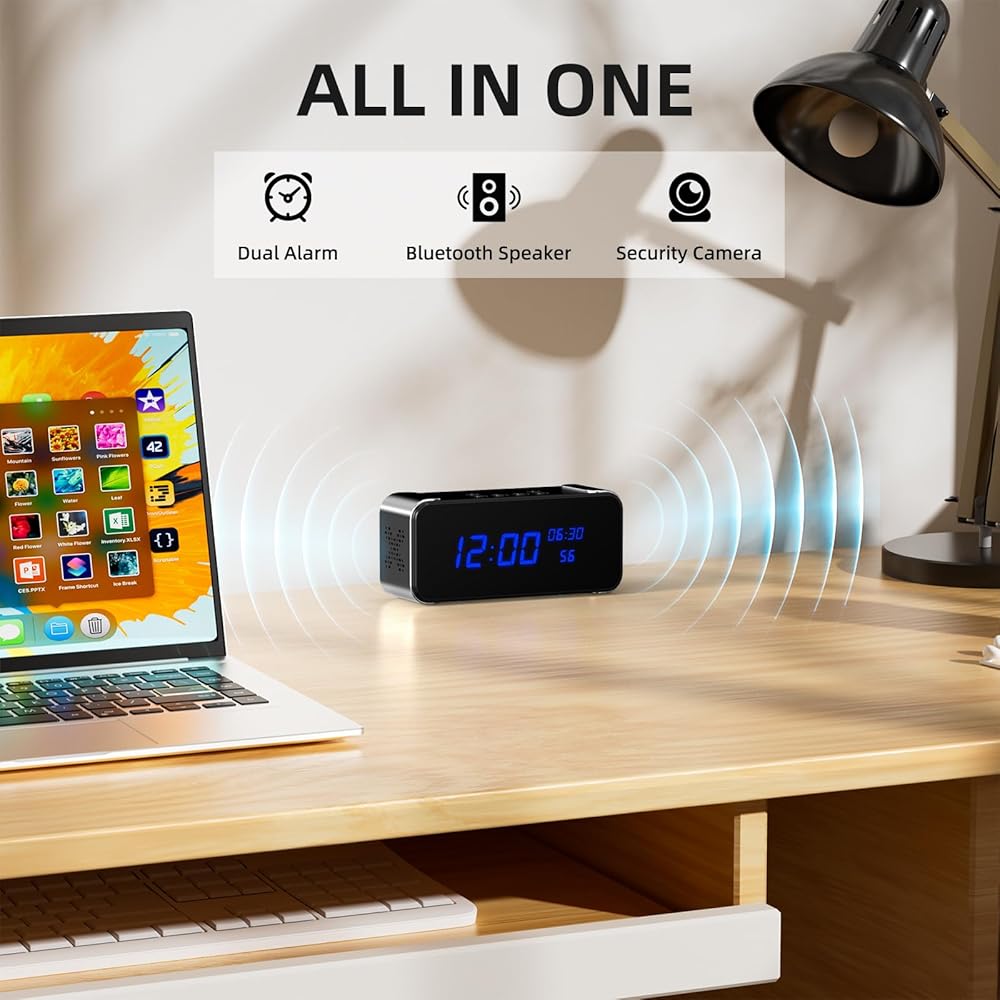 تصميم سري 3 في 1: كاميرا، ساعة منبه، مكبر صوت بلوتوث: أكثر من مجرد كاميرا، إنها رفيقك المنزلي الكل في واحد. يمكن دمجه بسلاسة في أي غرفة كمنبه حديث، كما أنه يتميز بمقياس حرارة/مقياس رطوبة مدمج، مما يوفر أمانًا سريًا وبيانات قيمة للغرفة في لمحة