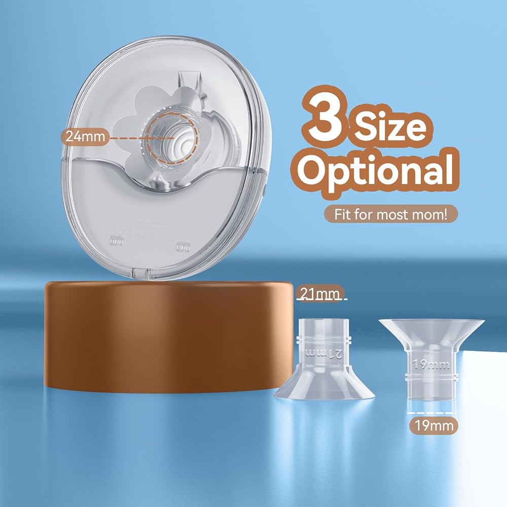 【SUITABLE FOR MOST MOMS】The portable breast pump comes in 3 sizes 19/21/24 mm (the pump itself is 24 mm) to fit different breast shapes. Made of BPA-free food-grade silicone for your comfort and your baby's safety.