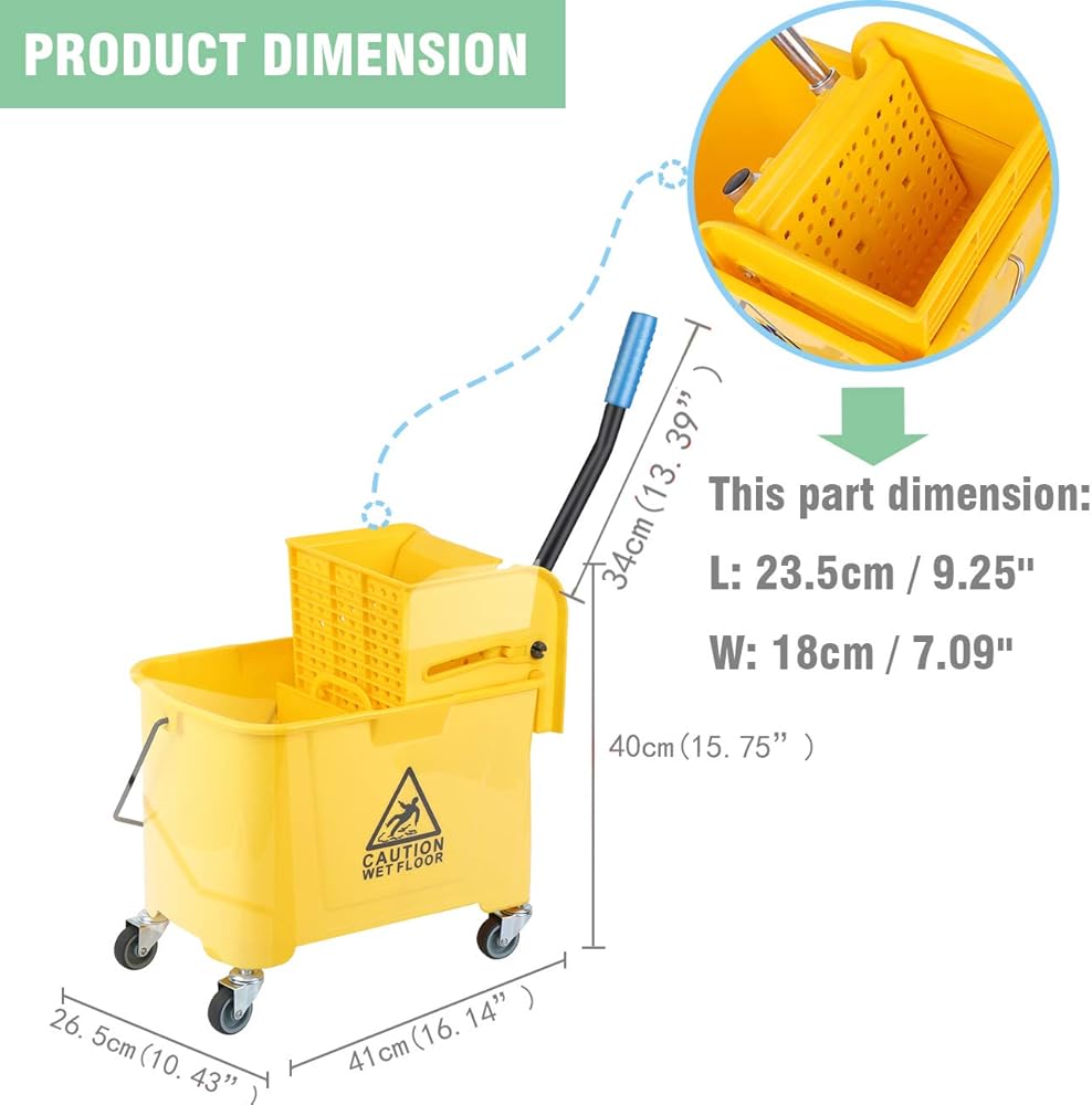 ⭐تصميم عالمي: دلو الممسحة هذا المزود بآلة الكوارتز للاستخدام 21 لترًا، والحجم 16.92 بوصة × 11.02 بوصة × 27.55 بوصة (الطول × العرض × الارتفاع). يقترح بشدة التأكد من المقاس أولاً قبل الشراء.