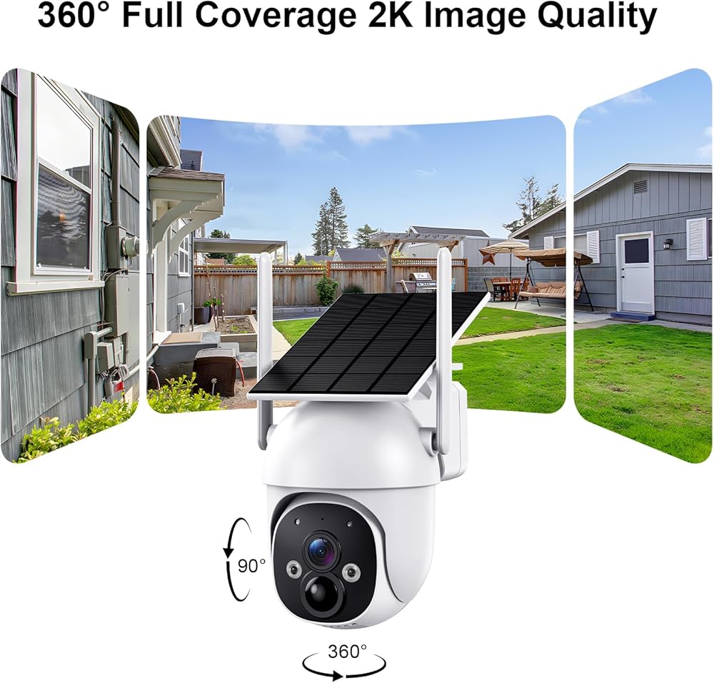 【عرض 360 درجة واكتشاف حركة PIR】 تتميز كاميرا الأمان الخارجية هذه بنطاق دوران أفقي 355 درجة و90 درجة رأسيًا، مما يسمح لها بالتقاط مناطق أوسع وتسجيل مقاطع فيديو واضحة تمامًا. بفضل مستشعر الحركة PIR الحساس، يمكن لهذه الكاميرات الخارجية تعزيز التعرف البشري لتقليل الإنذارات الكاذبة.