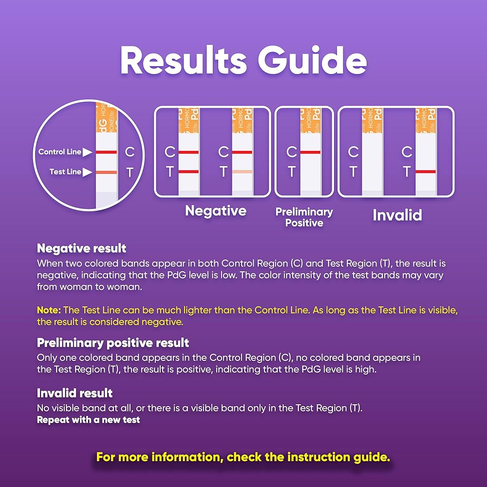Clear and Easy-to-Read Results – Simply dip the strip in first-morning urine for 15 seconds and read the results within 5–10 minutes. The easy-to-read format helps avoid confusion—one line means a higher PdG level, two lines indicate a lower one—no complicated interpretation required.