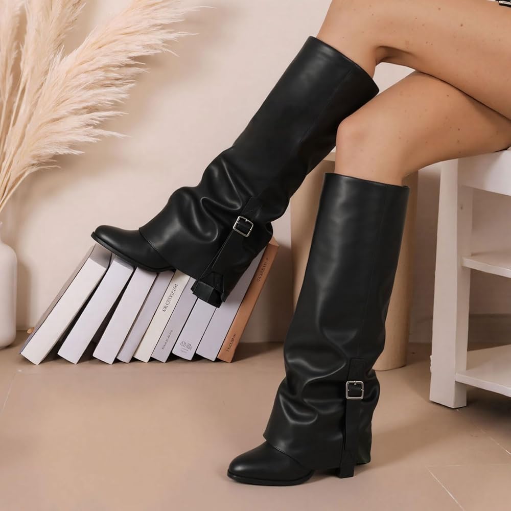 راحة طوال اليوم: مصممة بساق واسعة وواسعة لتناسب أحجام الأرجل المختلفة بشكل مريح. تضيف الصورة الظلية المترهلة إحساسًا مريحًا مع تجنب الضيق حول الساق، مما يجعل هذه الأحذية مثالية لساعات طويلة في العمل أو الحفلات أو المهمات اليومية.