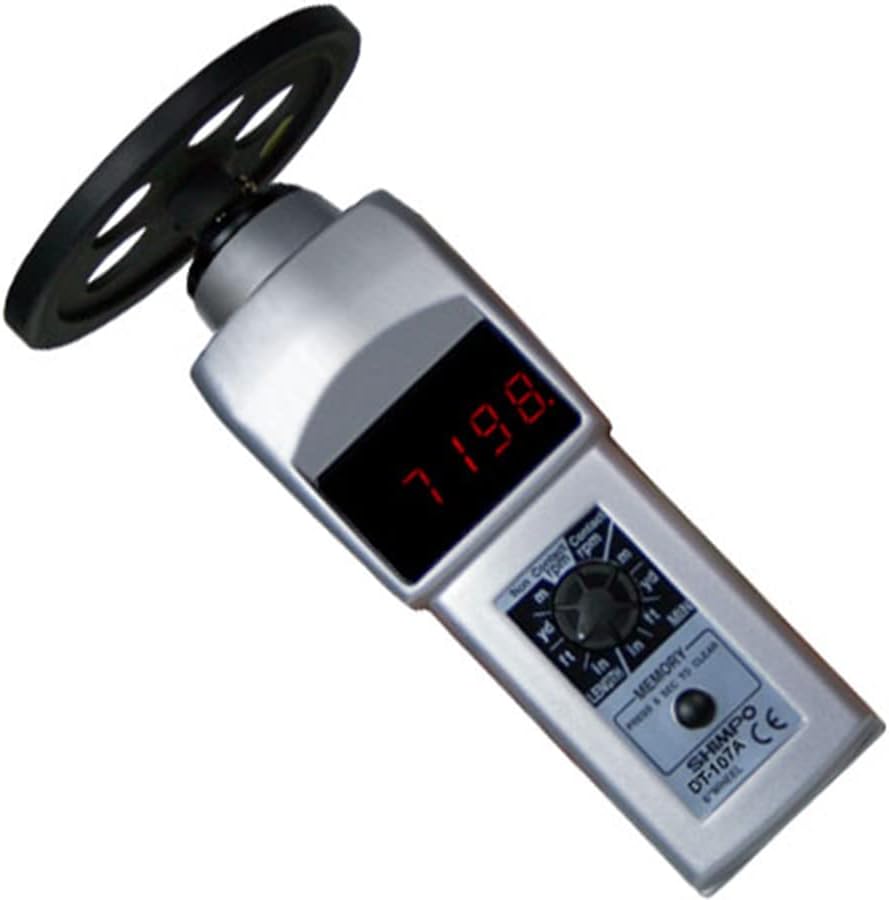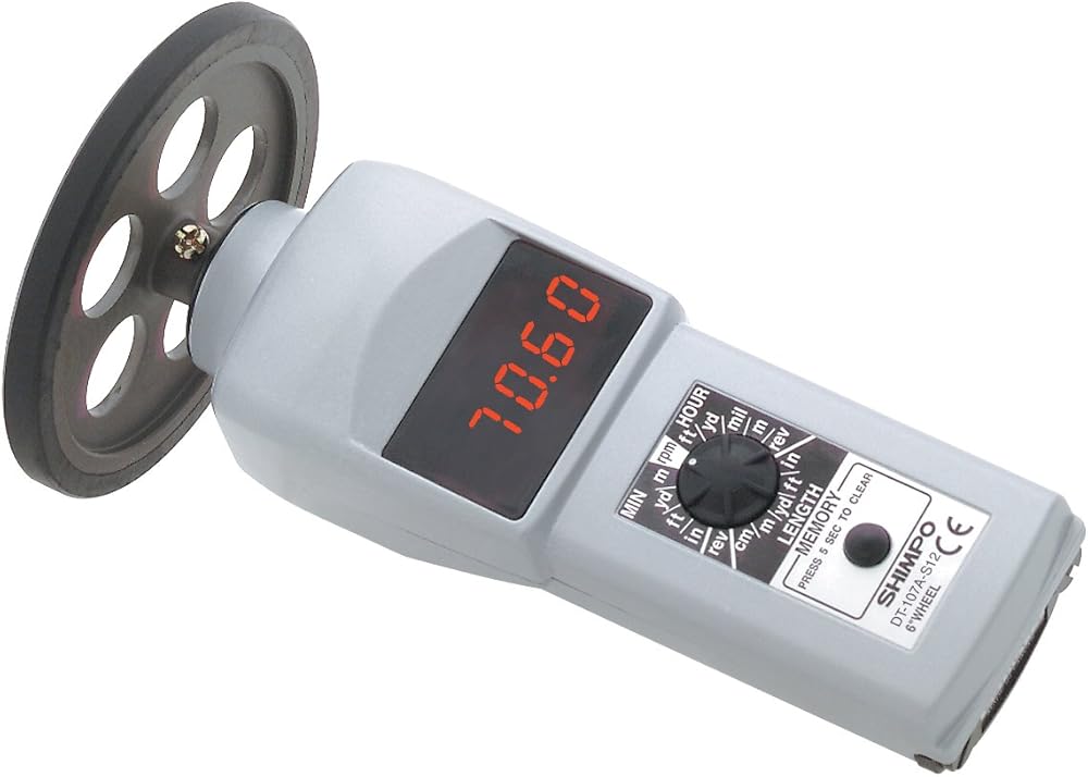 Shimpo DT-107A-S12 مقياس سرعة الدوران المحمول مع عجلة 12 بوصة، شاشة LED، نطاق 0.10-25000 دورة في الدقيقة