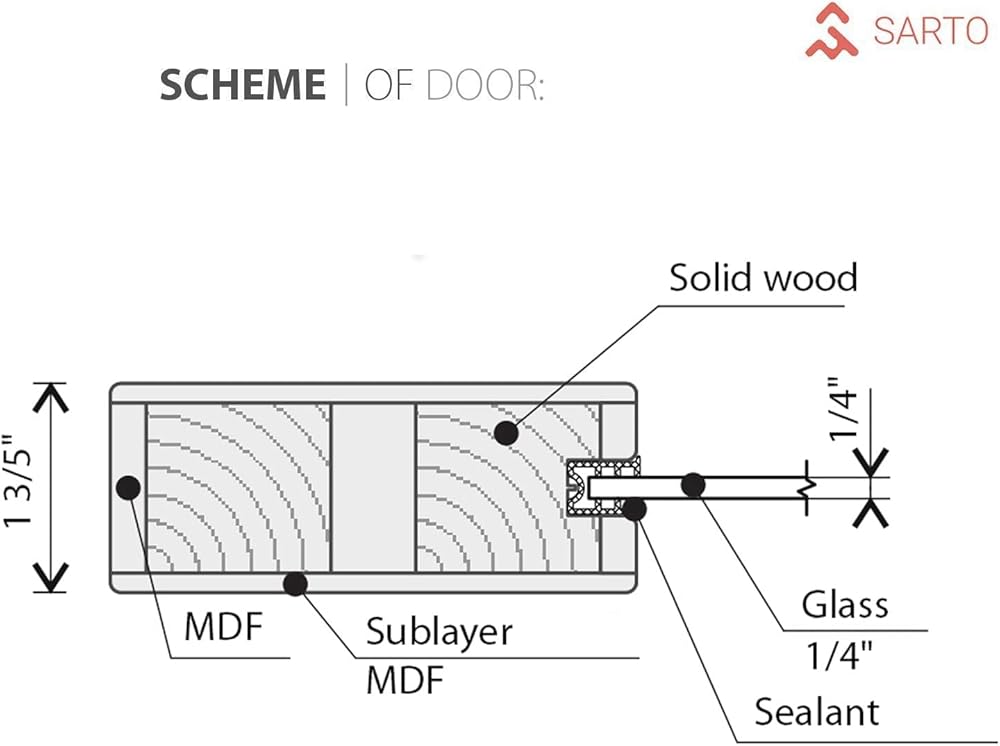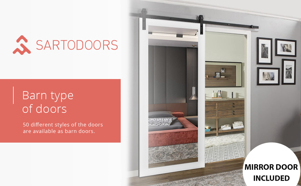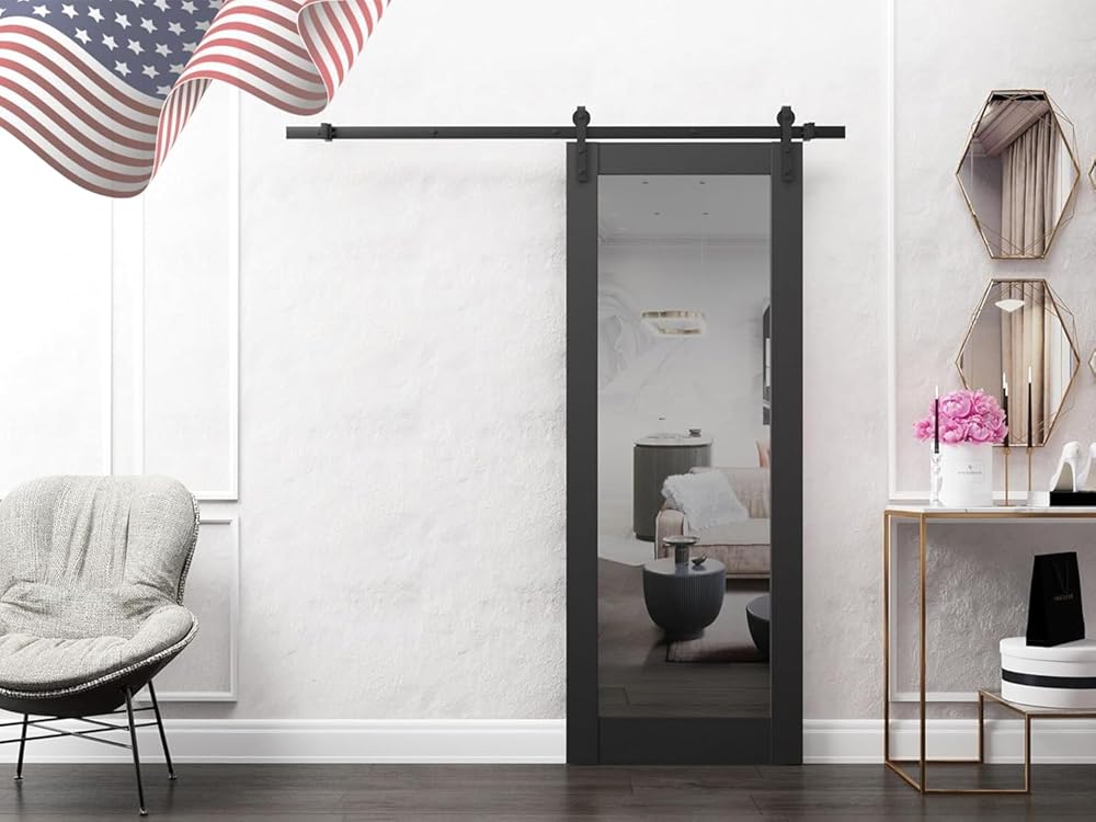 سارتودورس لوسيا 1299 | باب حظيرة داخلي منزلق فردي مع مرآة، من الخشب الصلب، مقاس 18 × 80، أسود، طراز حديث | الأجهزة متضمنة