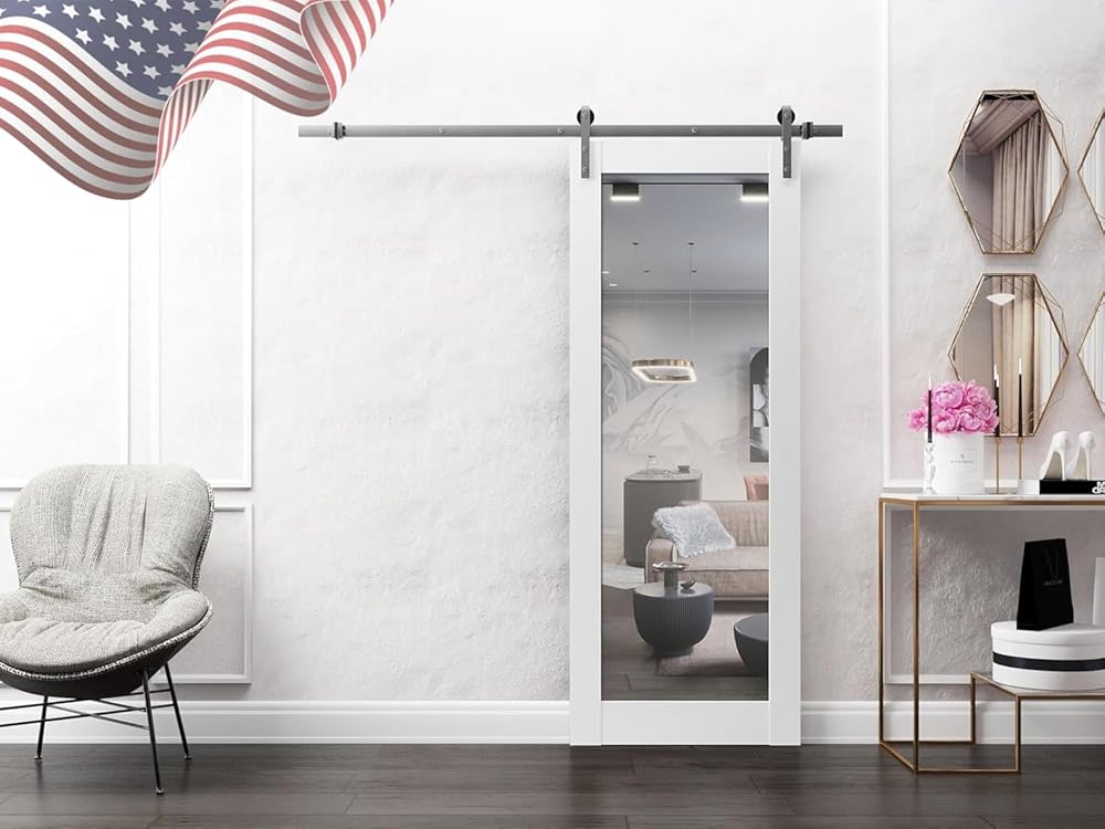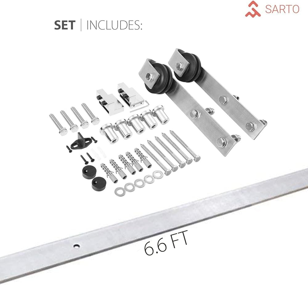 • ✔️ باب الحظيرة الداخلي - الباب عبارة عن ملحق منزلي عملي للغاية يوفر المساحة ويوفر خدمات طويلة الأمد. يتم تعليق الباب على سكة وينزلق من وإلى قطع إطارات الأبواب والأقفال باهظة الثمن. من السهل تركيب الأجهزة أو يوفر وقتك. أبواب الحظيرة للخزائن، باب الحظيرة مع مجموعة الأدوات متضمنة.