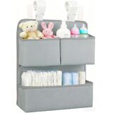 منظم حفاضات معلق للسرير / سرير الأطفال / روضة الأطفال / ساحة اللعب - يحمل أكثر من 80 حفاضة - ملحقات حامل حفاضات طاولة تغيير الحفاضات - منظم علبة حفاضات الحضانة - رمادي