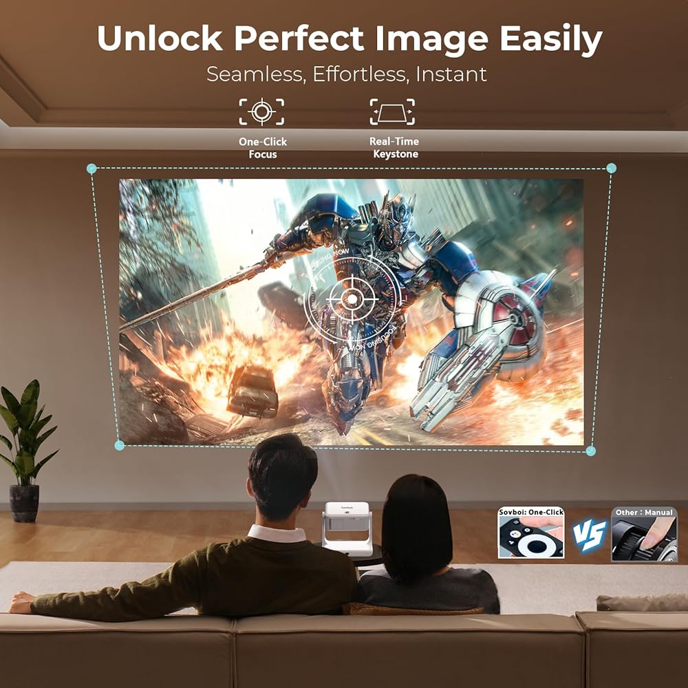 جهاز عرض 4K مع واي فاي وبلوتوث: [Google TV/1500 ANSI/التحكم الصوتي/التطبيقات المدمجة] جهاز عرض خارجي، جهاز عرض ذكي للأفلام المحمولة، جهاز عرض السقف المنزلي Sovboi 1080P، حامل 180 درجة/شاشة عرض 300 بوصة
