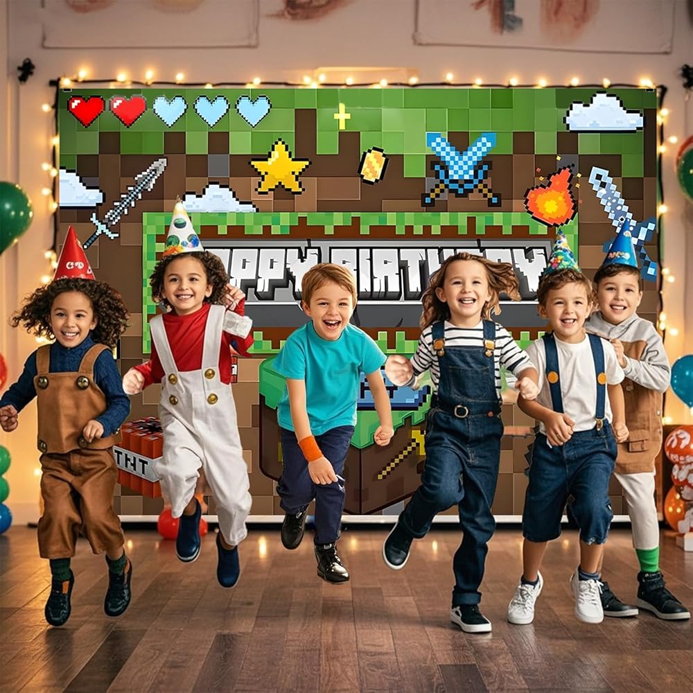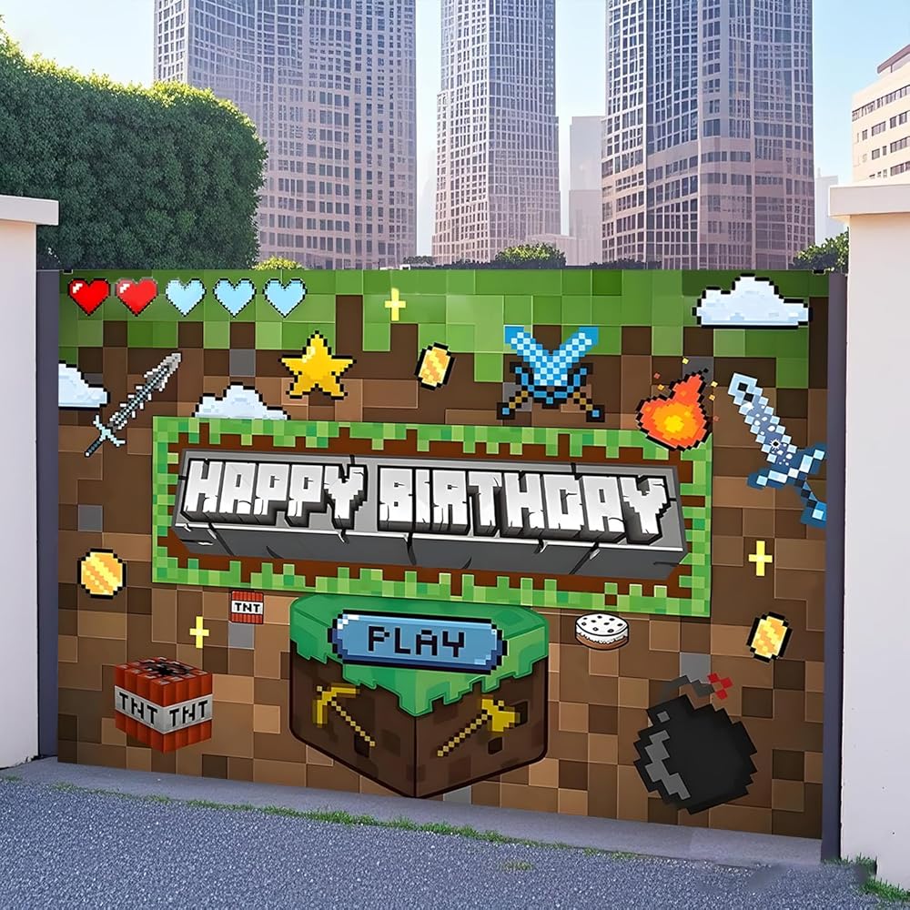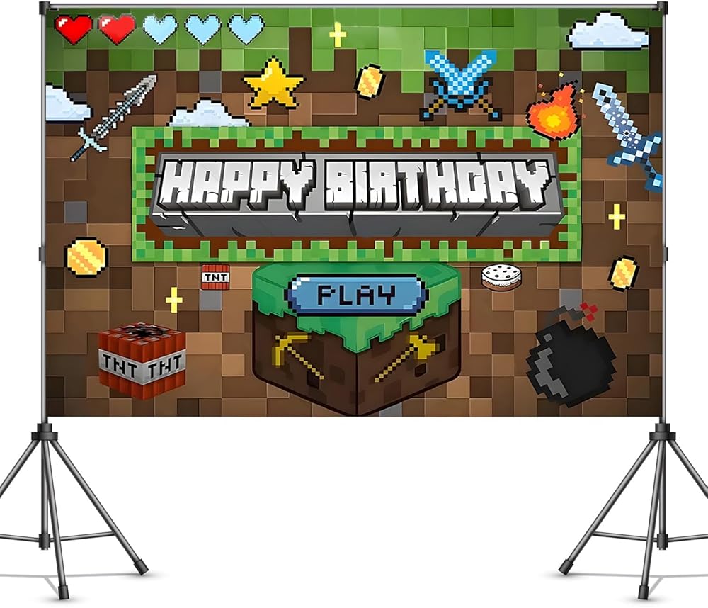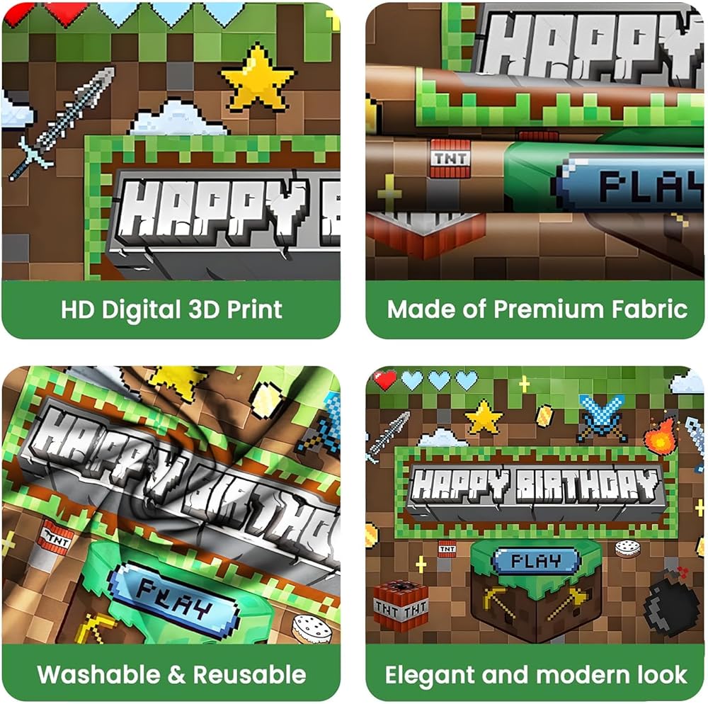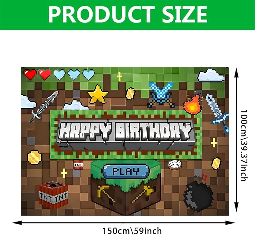 Pixel Backdrop: This pixel miner-themed backdrop features hanging loops for easy display and measures 59 x 39 inches. Perfect for decorating gaming-themed parties, birthday celebrations, or gatherings with friends.