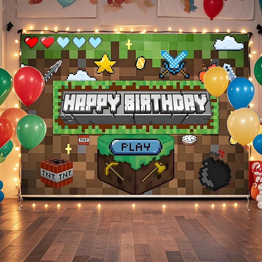 Pixel Party Decor: This game-themed backdrop is the perfect photo prop for teen or gaming enthusiast parties.
