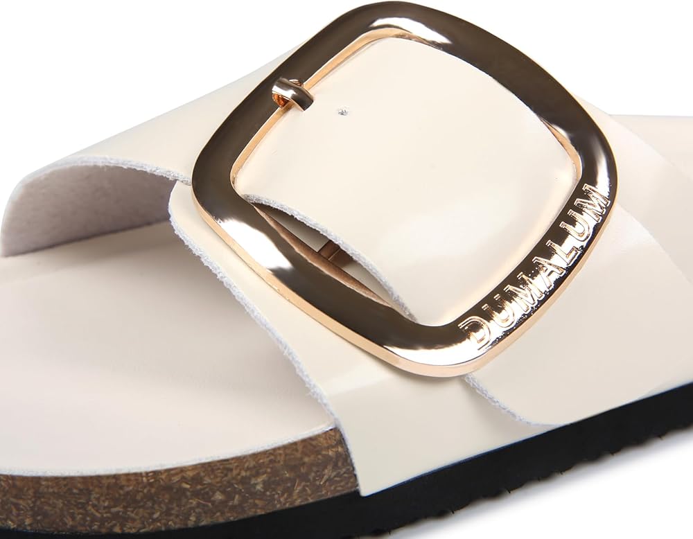 Dumalum Womens Slides Sandals Cork Footbed Flat Sandals Comfort Open Toe Adjustable Flip Flops Slip On Home Slippers for Dressy Summer Beach Essentials