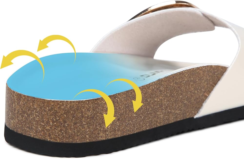 • Lightweight & Flexible: These comfortable slide sandals feature a highly flexible cork footbed and a durable EVA outsole, ensuring walking stability and long-lasting wear