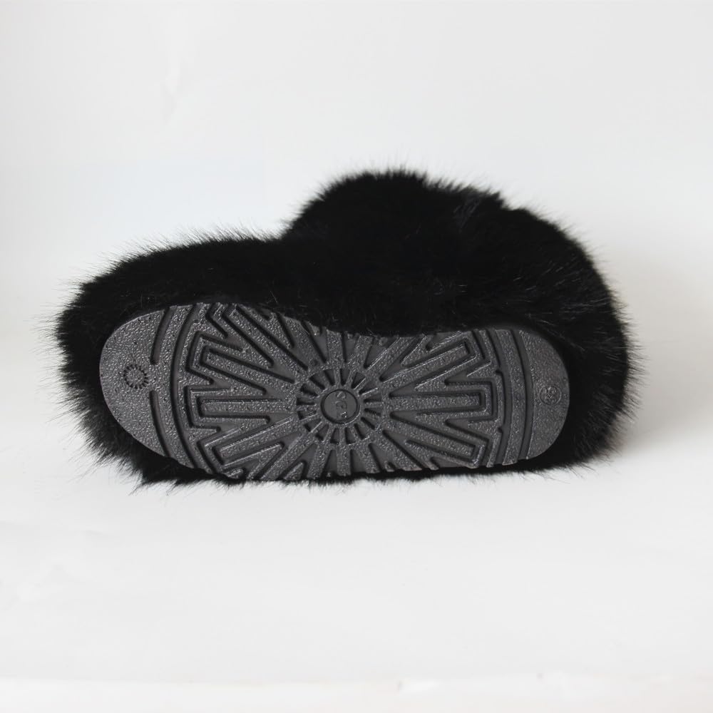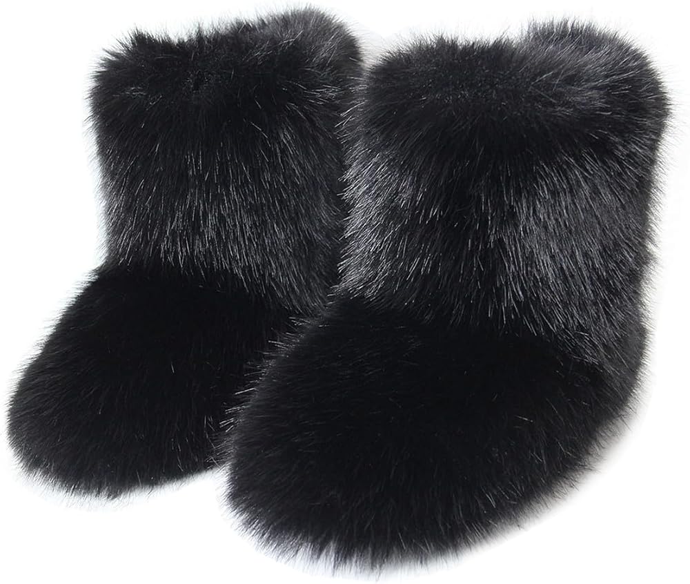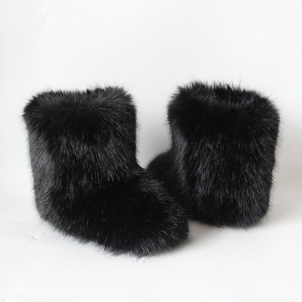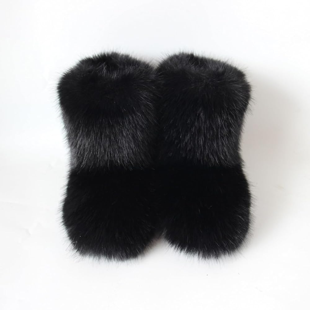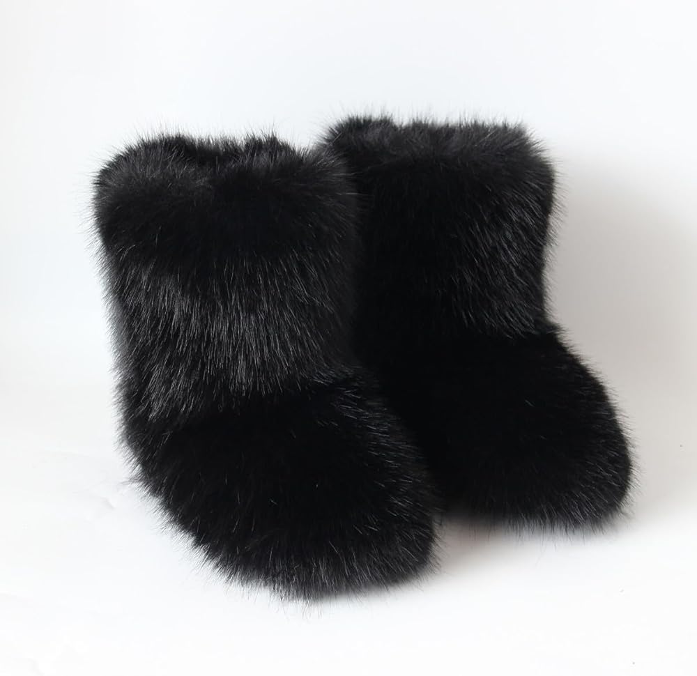 Faux fur+warm fur lining.The height of the kids fluffy snow boot is 7 inches, the heel is 1 inch.This snow boots are thickened, warm, non-slip and fashionableIt.High quality faux fur, no irritation to kids skin