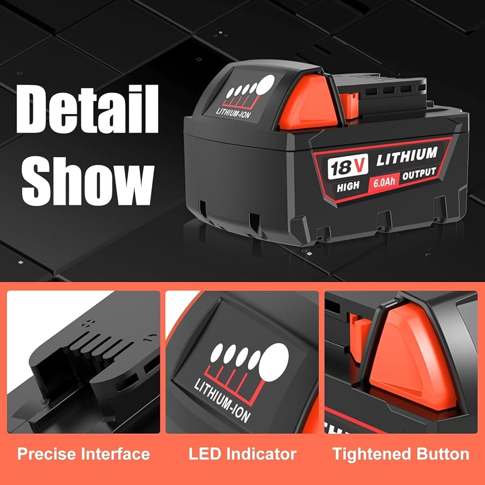 استبدال بطارية ليثيوم ميلووكي 18 فولت: 18 فولت 8000 مللي أمبير في الساعة استبدال بطاريات ليثيوم عالية السعة لبطارية ميلووكي 18 فولت XC 48-11-1815،48-11-1860،48-11-1852،48-11-1830،48-18-1840، 48-11-1811،48-11-1820،48-11-1822،48-11-1828،48-11-1841،48-11-1850، 48-11-1852،48-11-1865،48-11-1880،48-11-1852.