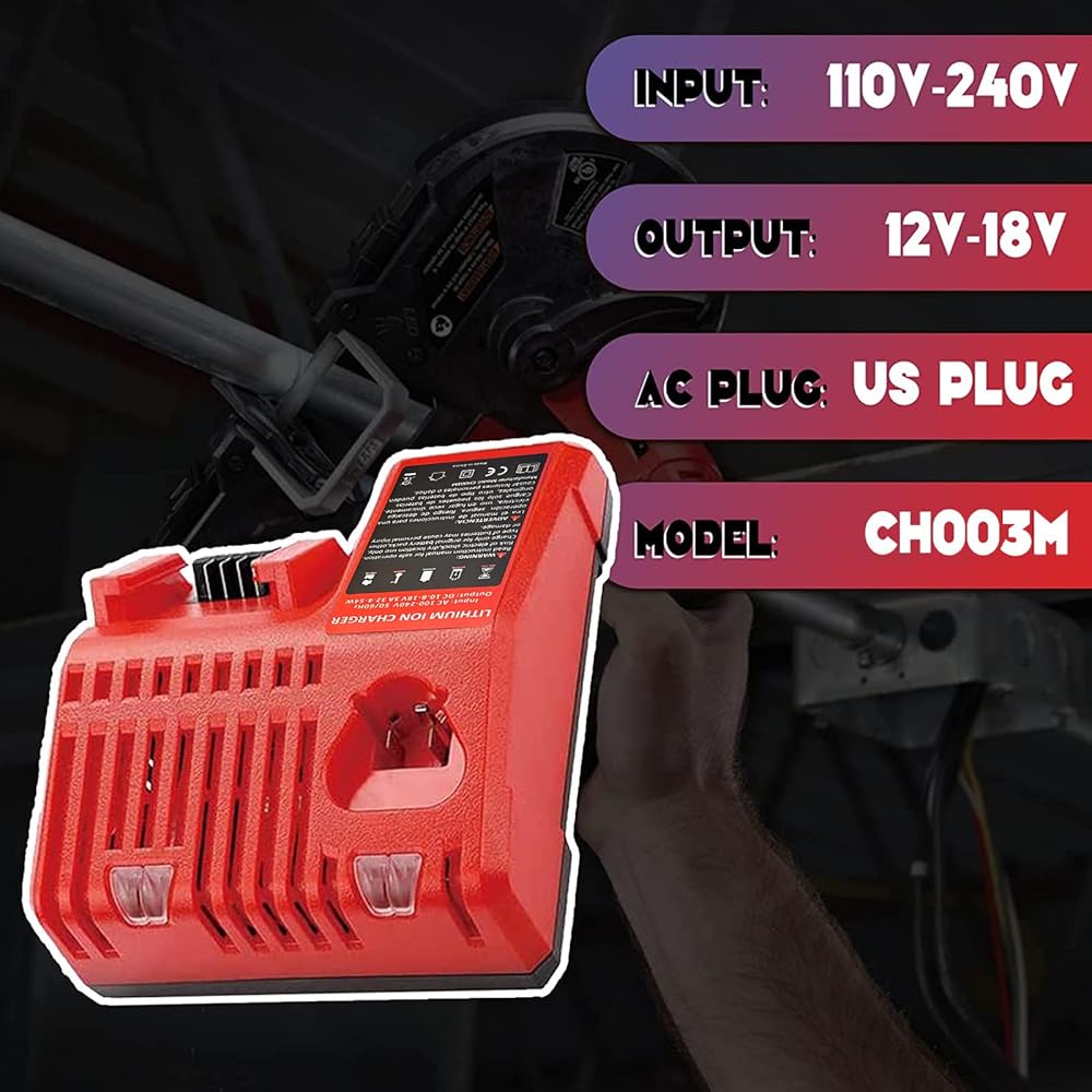 شاحن بطارية متعدد فولت: متوافق مع شاحن ليثيوم أيون ميلووكي 10.8 فولت - 18 فولت، يدعم الشحن السريع. تذكير دافئ: يرجى عدم شحن 10.8 فولت - 18 فولت في نفس الوقت، فقط بطارية واحدة يتم شحنها في كل مرة.
