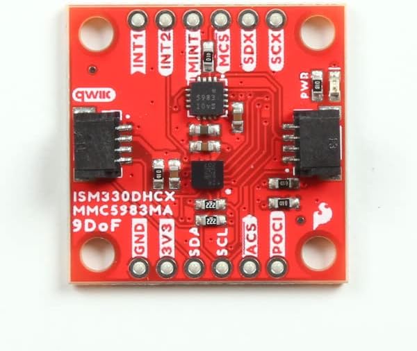 The SparkFun Qwiic 9DoF IMU Breakout combines the high-performance ISM330DHCX 3D digital accelerometer and gyroscope from STMicroelectronics with the highly sensitive MMC5983MA triple-axis magnetometer by MEMSIC to give you an ultra powerful and easy to use Qwiic enabled breakout board. Utilizing our handy Qwiic system, no soldering is required to connect it to the rest of your system. However, we still have broken out 0.1"-spaced pins in case you prefer to use a breadboard.