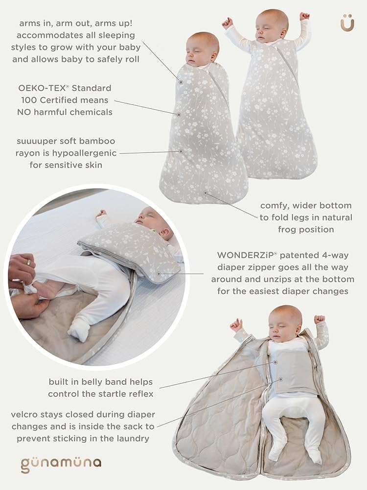 • Effortless Diaper Changes: The innovative WONDERZiP keeps baby swaddled during midnight diaper changes, making it easy to unzip, change, and zip back up without disturbing their sleep.