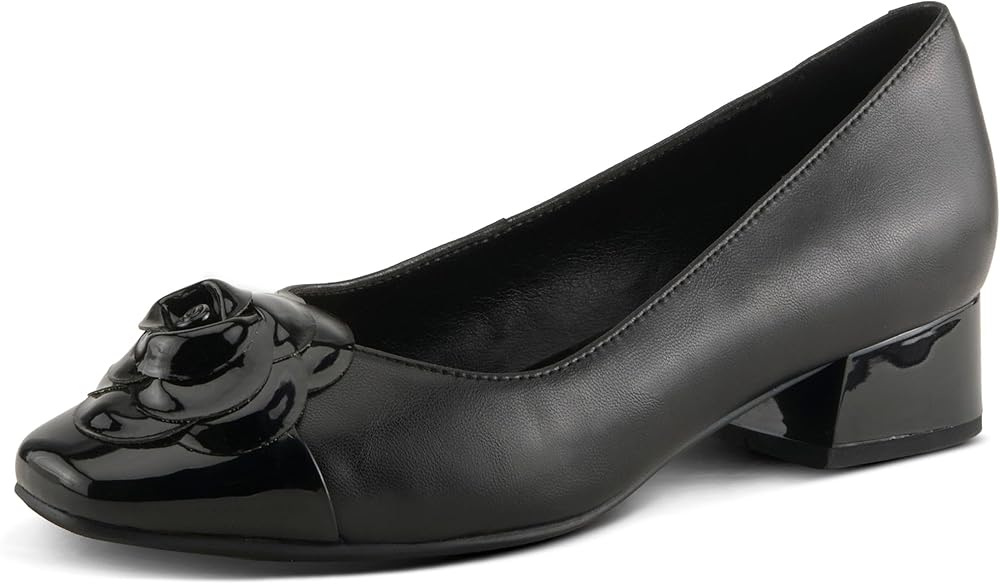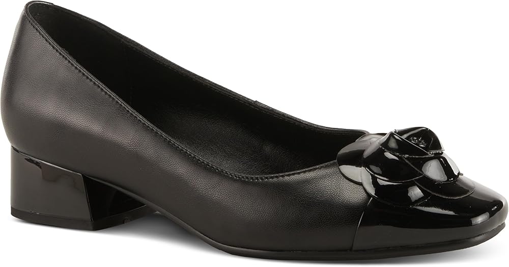 AZURA Style: ANGELINITE This women's slip-on short heel is a perfect blend of style and comfort. The shoe features a delicate floral applique that adds a touch of femininity to its cap-toe design. With ultimate comfort in mind, this shoe is perfect for everyday wear, making it a must-have for any fashion-conscious woman. Upper: Leather Lining: Synthetic, Textile Insole: Leather Outsole: Rubber Heel Height: 1 1/4" Features: - Comfort, Flexible Sole - Padded Insole, Premium Fit Recommendation: True to Size