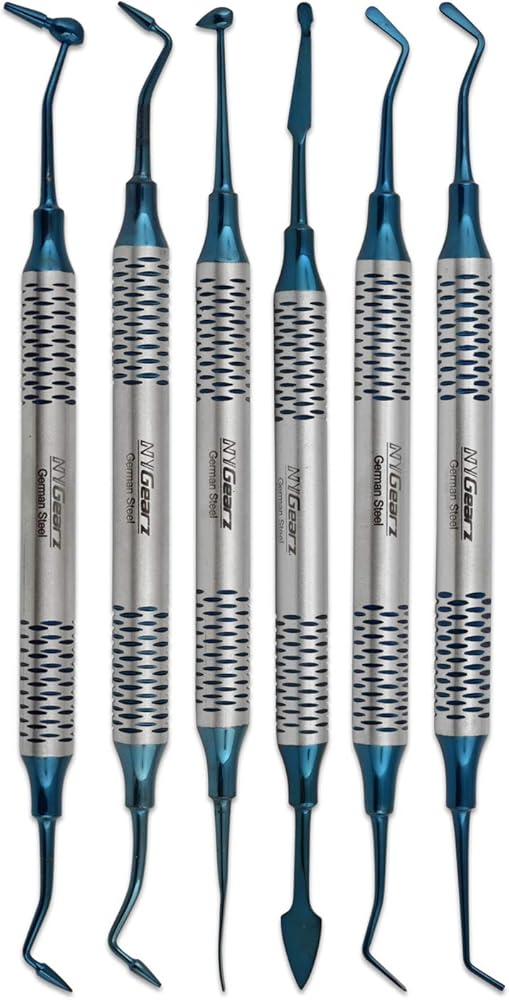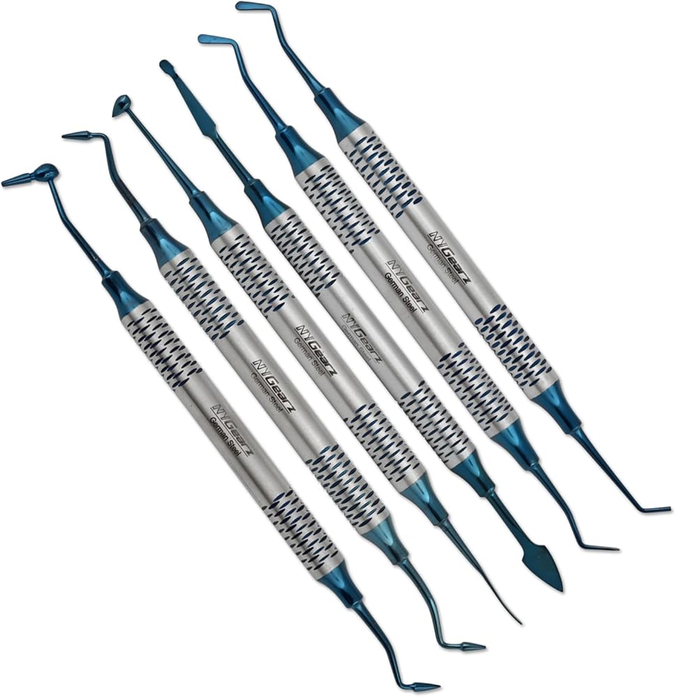 أدوات التنسيب المركبة: تحتوي مجموعة أدوات حشو الأسنان الدائمة من NYGEARZ Dental Instruments على 6 قطع من جميع الأشكال المطلوبة من أدوات أدوات طب الأسنان لاستعادة الأسنان باستخدام الأيونومرات المركبة أو الزجاجية.