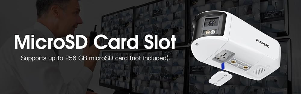 Smart Human and Vehicle Detection: Never be bothered by false alarms with our Paxvigo's latest and advanced AI algorithms. The camera will alert you only when it detects person or vehicles. Insert an up to 256 GB SD card to save videos locally without montly subscriptions.