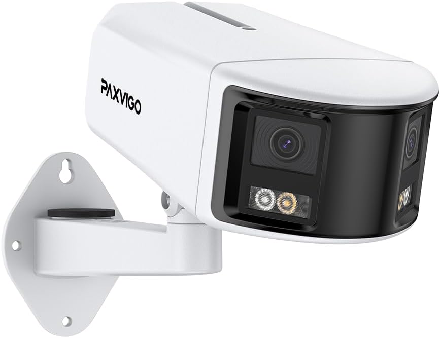 Paxvigo 4K 8MP UHD Dua Lens Panoramic PoE IP Security Camera for Outdoor/Indoor Surveillance, Max. 256GB Storage, IP67, Color Night Vision, Microphone, Siren & Alarm, AI Humans & Vehicles-EBF810