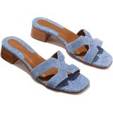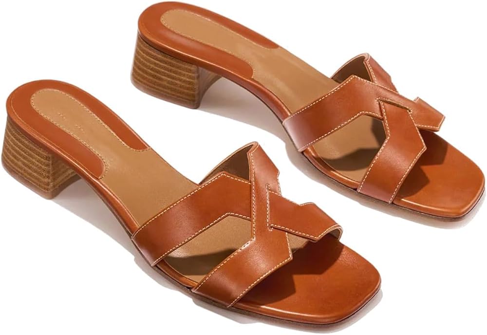 صنادل متقاطعة Strappy للنساء صنادل ذات كعب مكتنز ذات كتلة منخفضة سهلة الارتداء على البغال مربعة مفتوحة من الأمام أحذية مريحة غير رسمية