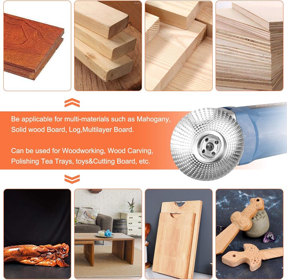 【التوافق: مناسب لمعظم المطاحن الزاوية والمطاحن اليدوية مقاس 4 بوصة (100 مم) أو 4-1/2 بوصة (115 مم). يمكن لهذا المنتج أن يلبي احتياجاتك المختلفة، ويمكنك قطع الخشب مباشرة مثل الزبدة، ويمكنك استخدام ملحقات ديكور المنزل والحديقة التي أنشأتها لمشاركة عائلتك. تخيل فرحة وجه طفلك عندما يلعب بالألعاب الخشبية التي نحتها والده.