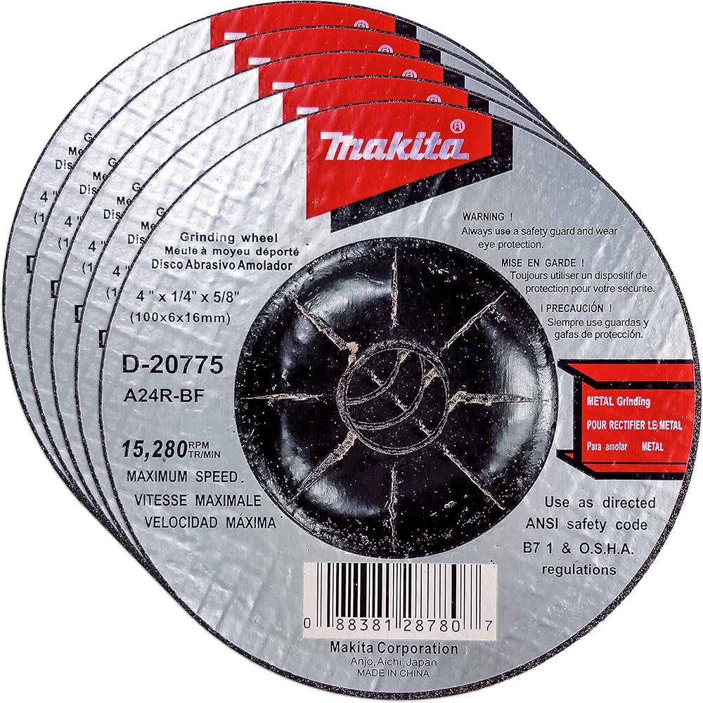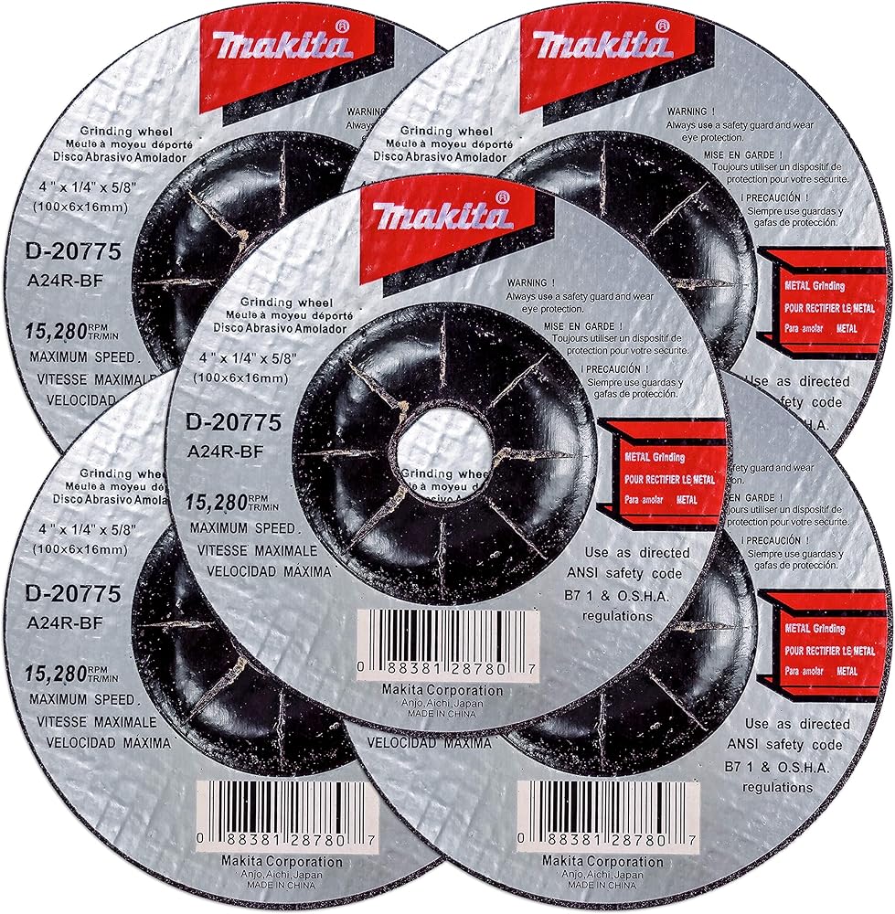 • ✅ 5 MAKITA 4” Grinding Wheels for Metal | 4 Inch x 1/4-Inch x 5/8-Inch | Optimized for Makita 4” Angle Grinders and compatible with All 4” Angle Grinders with standard M10 x 1.25" Spindle Thread