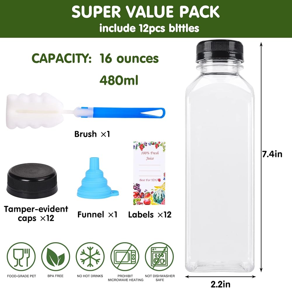 سوبرليل 12 قطعة من زجاجات العصير البلاستيكية الفارغة سعة 16 اونصة
