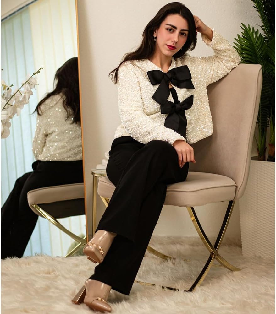 Metallic Accent Block Heels Metallic Chain Embellishment Zipper Closure Comfortable Cushion Insoles Heel Height: 3.5 inches SH5239