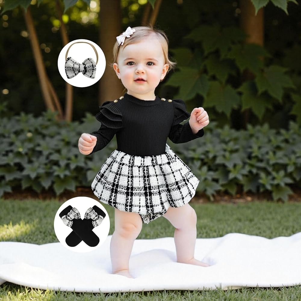• المواد: ملابس البنات الرضع مصنوعة من 65% قطن، 35% بوليستر؛ نسيج ناعم ومريح؛ خفيف الوزن ومسامي، لا يسبب ضررًا لبشرة الطفل الحساسة، فستان رومبير للفتيات الرضع، ملابس منقوشة للفتيات الصغيرات، ملابس شتوية للفتيات الصغيرات
