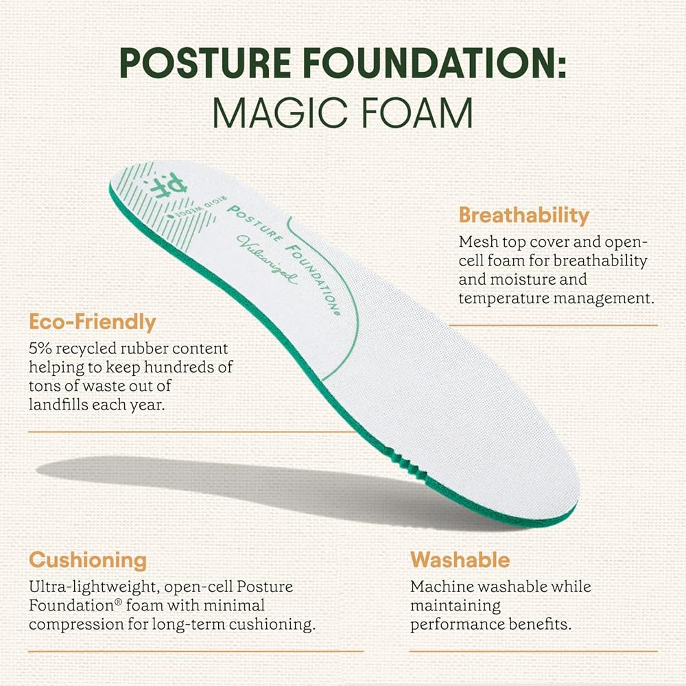 نعال مؤسسة Signature Posture: إسفنج خفيف الوزن مع محتوى معاد تدويره يوفر دعمًا منظمًا لقوس القدم لراحة طوال اليوم. تم تصميم الجزء الأوسط المنخفض في الأصل للرياضيين ليتحمل الارتداء اليومي بسهولة.