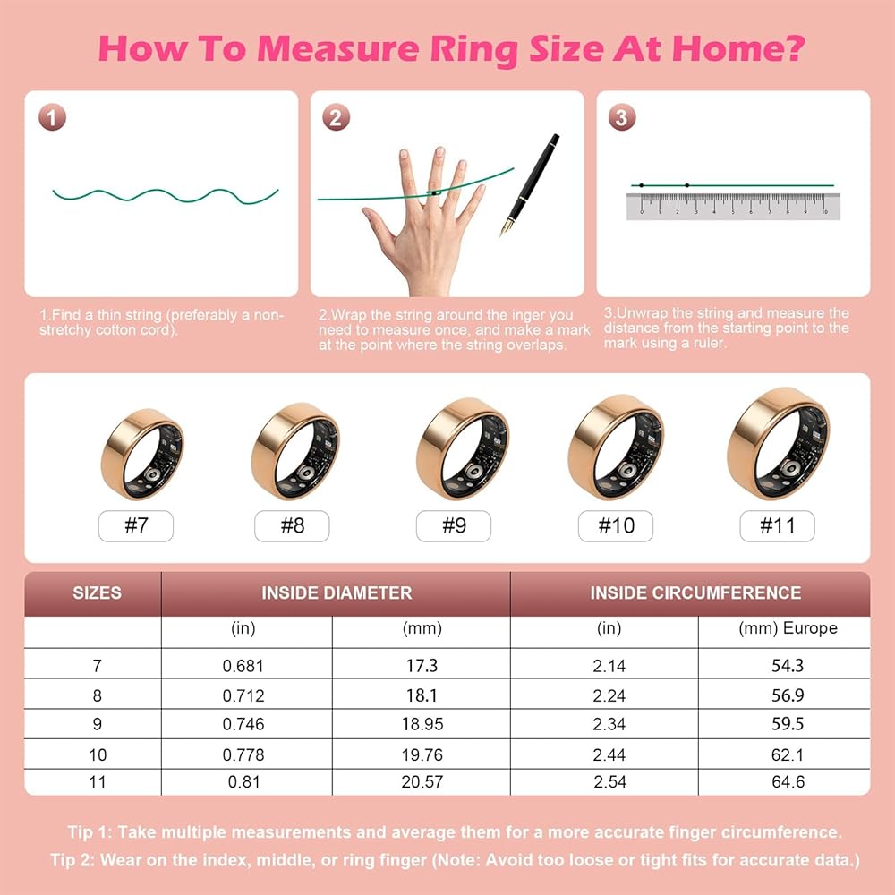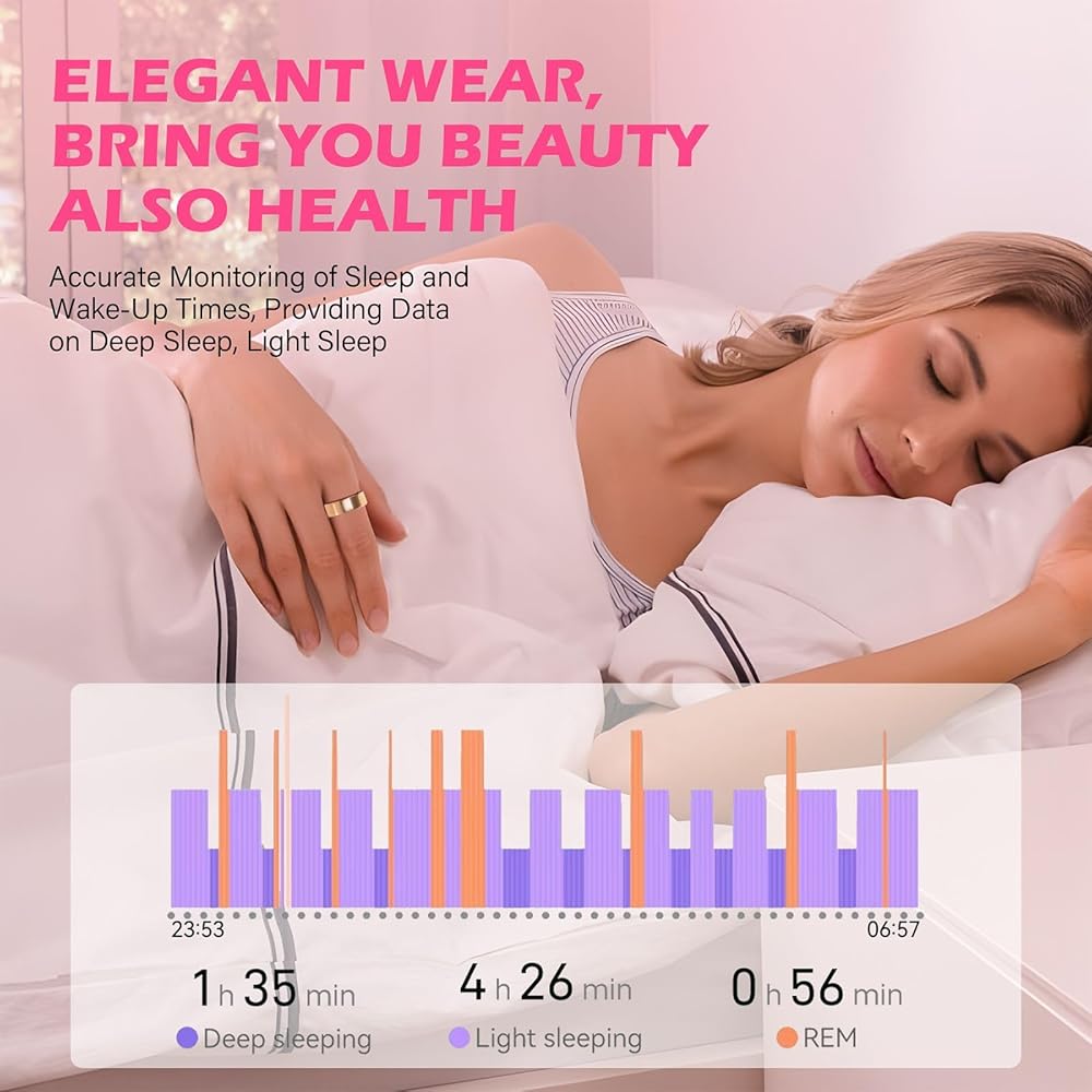 【حلقة ذكية الكل في واحد】تجمع الحلقة الذكية بين تتبع معدل ضربات القلب ومراقبة الأكسجين في الدم والنشاط اليومي وتحليل النوم في جهاز واحد. إنه يعمل على مدار الساعة لإبقائك مطلعًا على حالتك الصحية، ويقدم نظرة ثاقبة لحالتك البدنية، وعدد الخطوات، والمسافة المقطوعة، والسعرات الحرارية المحروقة، مما يساعدك على الحفاظ على نمط حياة صحي.