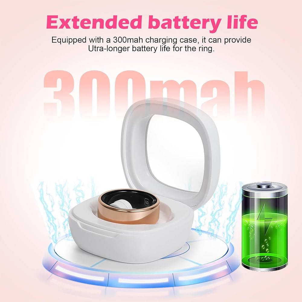 【بطارية قوية وطويلة الأمد】توفر الحلقات الذكية للرجال عمر بطارية مثير للإعجاب، يدوم ما بين 2 إلى 5 أيام عند الشحن الكامل. مع وقت شحن سريع لمدة ساعة واحدة وحقيبة شحن بقدرة 300 مللي أمبير في الساعة توفر من 10 إلى 15 عملية شحن إضافية، يمكنك الاعتماد على خاتمك للبقاء قيد التشغيل لتلبية جميع احتياجاتك الصحية واللياقة البدنية دون انقطاع.