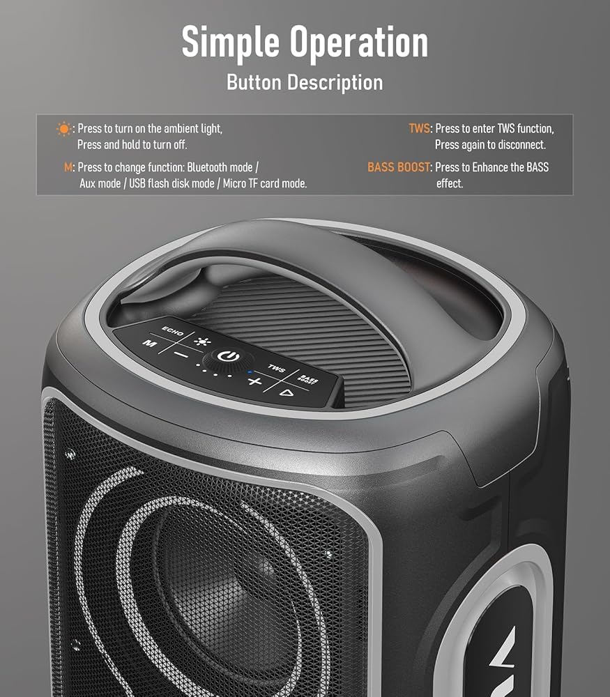 • مكبر الصوت البلوتوث بقوة 180 وات هذا يعتمد على مزيج هيكل صوتي احترافي من "2 * مكبرات صوت + 1 * مكبر الصوت. توفر وحدتا مكبرات الصوت مخرجات قوية، مما يوفر تأثيرًا عميقًا وقويًا منخفض التردد؛ توفر وحدة مكبر الصوت المستقلة تفاصيل صوتية واضحة وشفافة، مما يمنحك تجربة استماع غامرة كما لو كنت في مكان الحادث