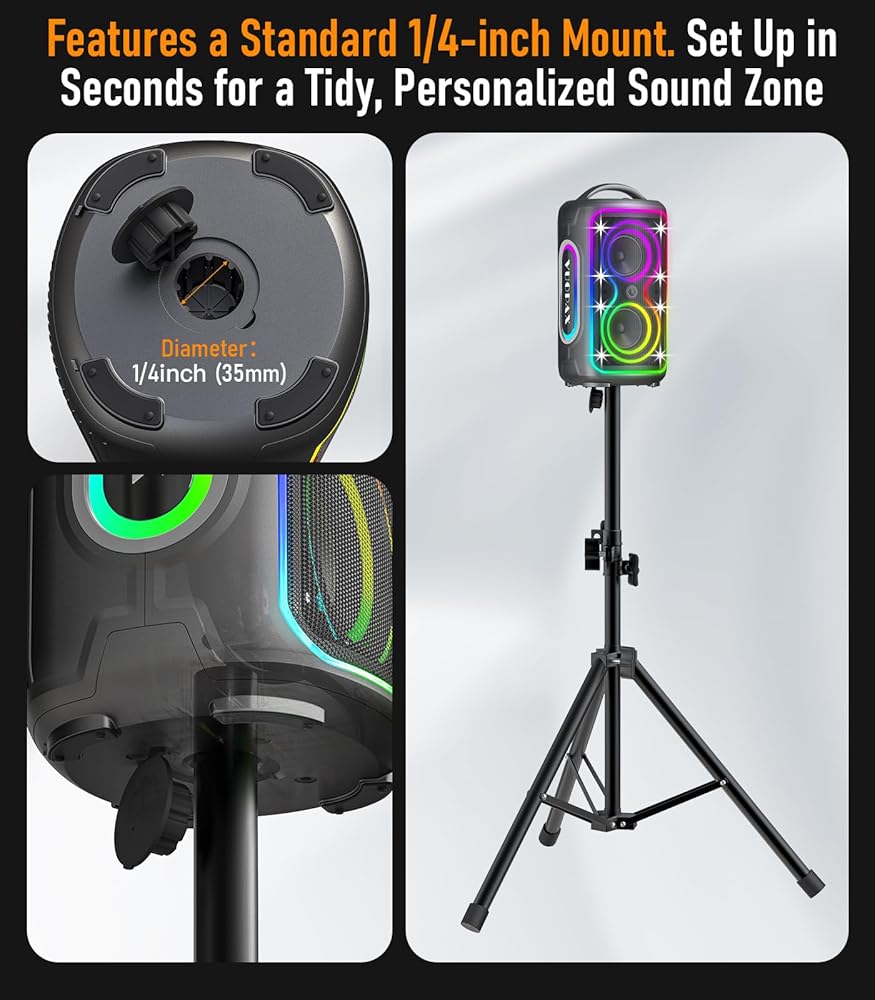 • 𝐆𝐨𝐫𝐠𝐞𝐨𝐮𝐬 𝐑𝐆𝐁 𝐋𝐢𝐠𝐡𝐭𝐢𝐧𝐠: مزود بنظام إضاءة RGB ديناميكي، فهو لا ينبض في الوقت الفعلي على إيقاع الموسيقى فحسب، بل يوفر أيضًا ألوانًا متعددة وتأثيرات إضاءة يمكن تعديلها تعديلها وتبديلها بحرية. اصنع مشهدًا احتفاليًا مليئًا بالحس التكنولوجي والحيوية بالنسبة لك، مما يعزز بشكل كبير الجو والجاذبية العاطفية للتجمع، مما يجعل حفلتك لا تُنسى!
