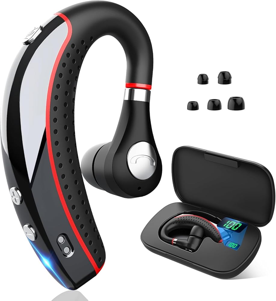 【متين ومقاوم للعرق مع شاشة عرض الطاقة】 مقاومة للعرق والماء بتصنيف IPX5 تدوم لساعات طويلة في المكتب أو أثناء التنقل. تتميز علبة الشحن بشاشة رقمية حتى تعرف دائمًا حالة البطارية. مثالية كسماعة رأس بلوتوث لسائق الشاحنة والمكتب لإجراء مكالمات واضحة بدون استخدام اليدين وسماعة رأس بدون استخدام اليدين للهاتف الخلوي، توفر سماعة الأذن بلوتوث هذه أداءً موثوقًا