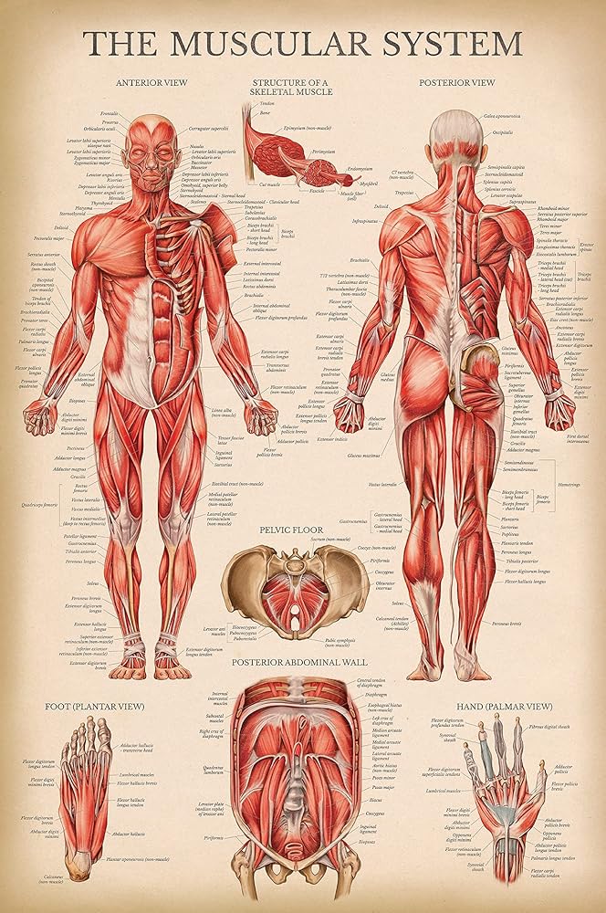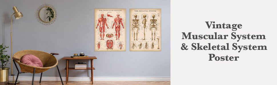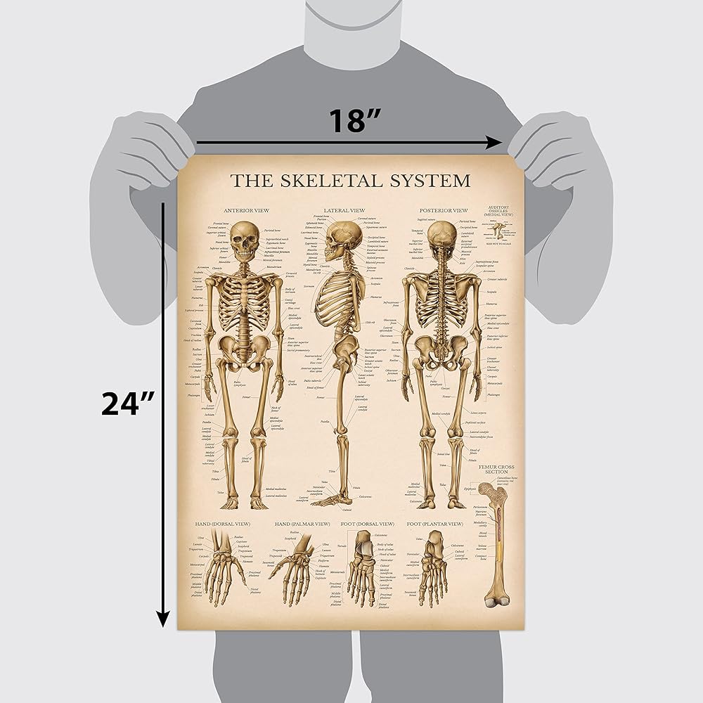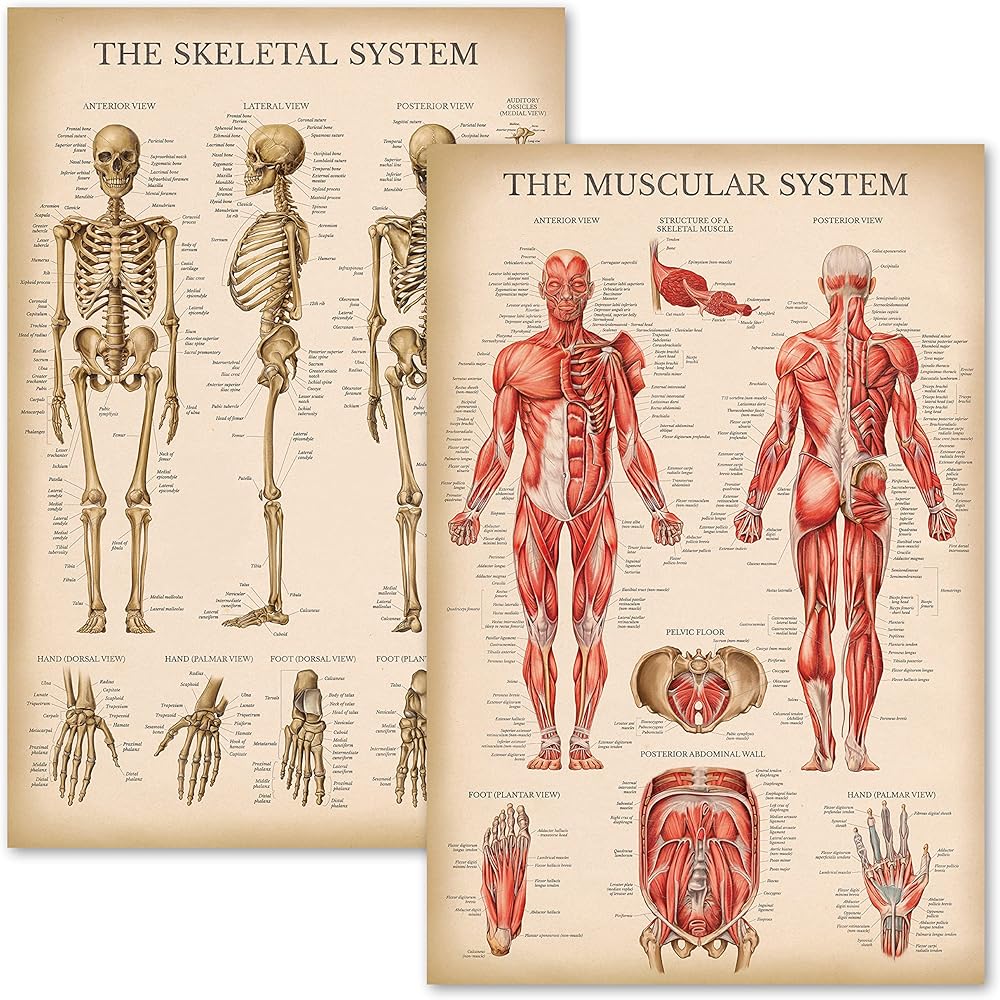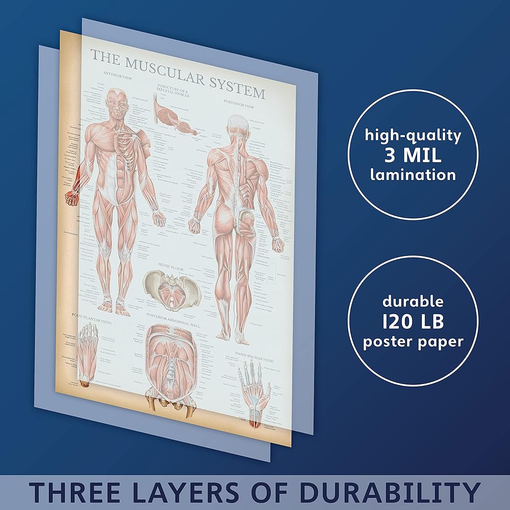 مجموعة الرسم البياني التشريحي للجهاز العضلي والهيكل العظمي من Palace Learning - ملصقات تشريح الهيكل العظمي البشري والعضلات (مغلفة، 45.72 سم × 60.96 سم)