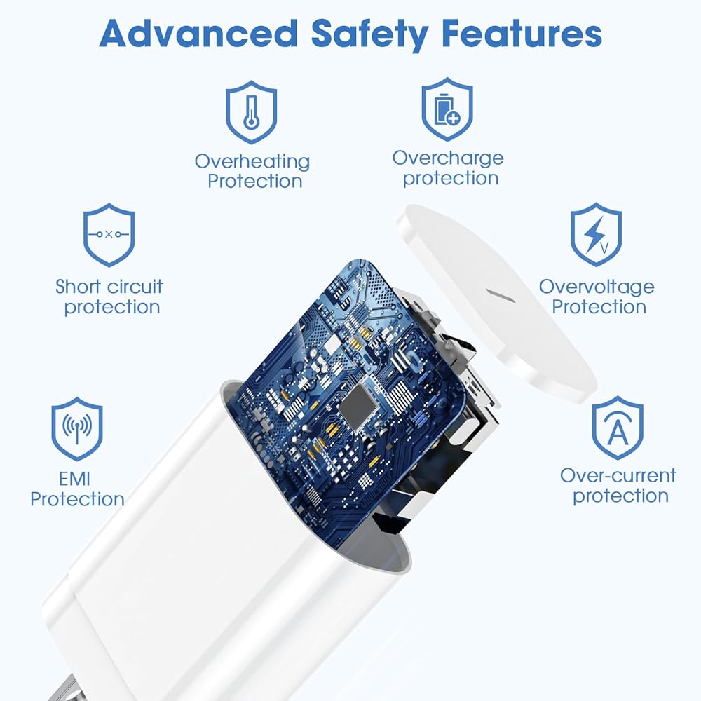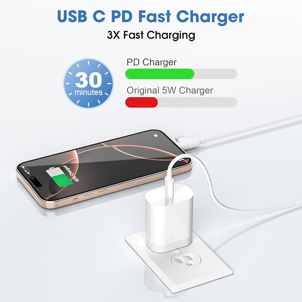 شاحن WWB 30 واط USB C شحن سريع، 2 حزمة شاحن حائط USB C مع كابل USB C إلى C بطول 6 أقدام وكابل Lightning، متوافق مع iPhone 17/16/15/14/13/12/11 Pro Max وiPad وAirPods