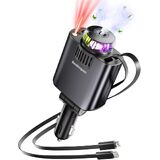 شاحن سيارة قابل للسحب مع ناشر معطر الهواء وأضواء النجوم، محول ولاعة سجائر متعدد المنافذ لشاحن هاتف السيارة iPhone USB-C/Type-C شحن سريع مع كابلين قابلين للسحب، علاج عطري للسيارة