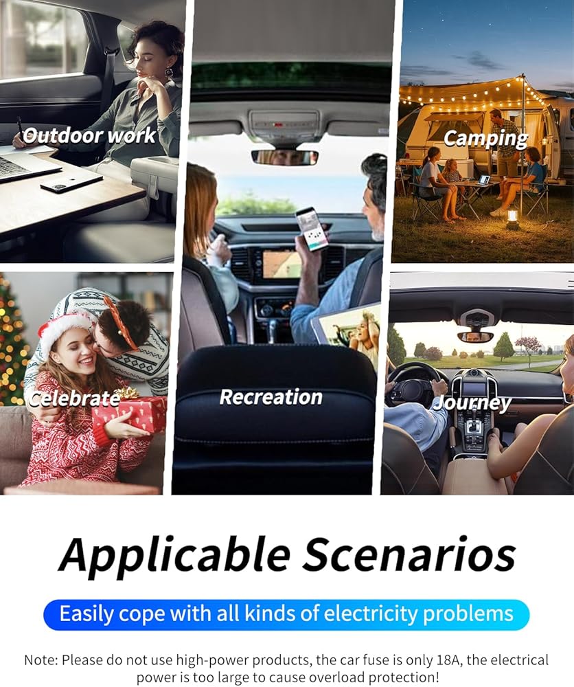 【توافق واسع وقابلية للحمل】 يتم توصيله مباشرة بأي مقبس ولاعة سجائر قياسي في السيارة أو الشاحنة أو سيارات الدفع الرباعي بقوة 12 فولت. تصميمه المدمج وخفيف الوزن يجعل من السهل حمله وتخزينه. الرفيق المثالي لرحلات الطريق لسفر العمل أو العطلات العائلية أو مغامرات التخييم أو احتياجات الطاقة في حالات الطوارئ