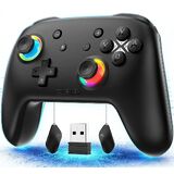 وحدة تحكم التبديل، وحدة تحكم بلوتوث لاسلكية لنينتندو سويتش 2/سويتش/لايت/OLED، وحدات تحكم في الألعاب متوافقة مع iPhone/Mac/iPad/iOS/Android/Phone/PC/Steam والتلفزيون مع محركات دوارة، عصا التحكم بتأثير قاعة RGB/أزرار خلفية ماكرو/أوضاع توربو/6 محاور