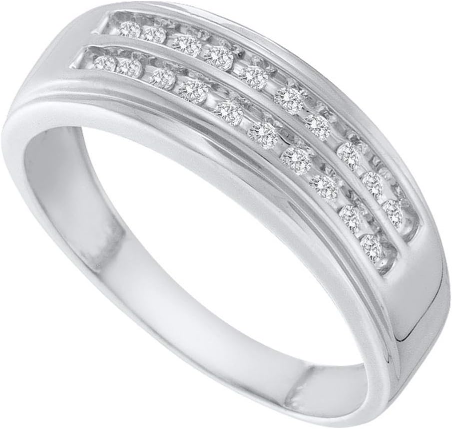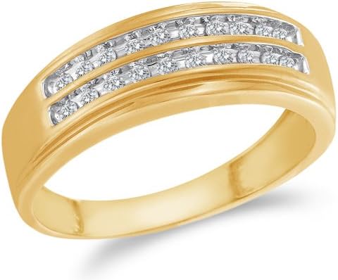 14K Yellow and White Two Tone Gold Diamond Two Rows MENS Wedding Band Ring - w/ Channel Set Round Diamonds - (1/4 cttw)
