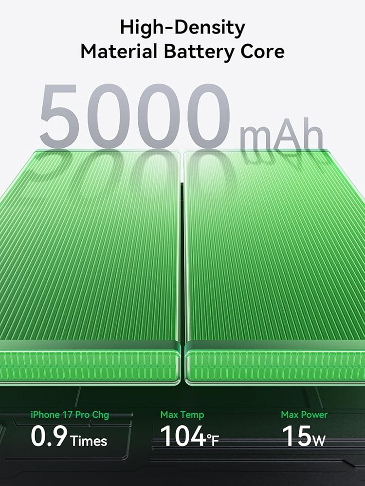 🔋【مصدر الطاقة الثاني لهاتفك】مع سعة موثوقة تبلغ 5000 مللي أمبير في الساعة، يمكن لحزمة بطاريات magsafe الخاصة بنا شحن جهاز iPhone الخاص بك من 15% إلى 55% في 30 دقيقة فقط، ويتم شحنها بالكامل في 60 دقيقة، وتوفر طاقة إضافية عندما تكون في أمس الحاجة إليها، مما يزيل القلق من انخفاض البطارية. تم تصميمه بخلايا عالية الجودة تتحمل أكثر من 800 دورة شحن مع الحفاظ على صحة تزيد عن 80%.