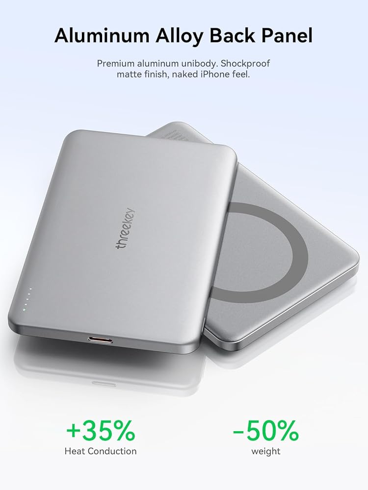 🛡️【تصميم متين وأداء طويل الأمد】يتميز هذا الشاحن اللاسلكي المحمول بنفس بطارية الليثيوم بوليمر مثل تيسلا. تم تصميم هذا الشاحن المحمول MagSafe من مواد عالية الجودة لضمان متانة طويلة الأمد واستخدام موثوق. مزود بميزات أمان متقدمة مثل التحكم في درجة الحرارة NTC والحماية من الشحن الزائد، ويضمن هذا الشاحن بقاء هاتفك آمنًا أثناء الشحن. اشحن براحة البال، مع ضمان أن جهازك يتمتع بحماية موثوقة.
