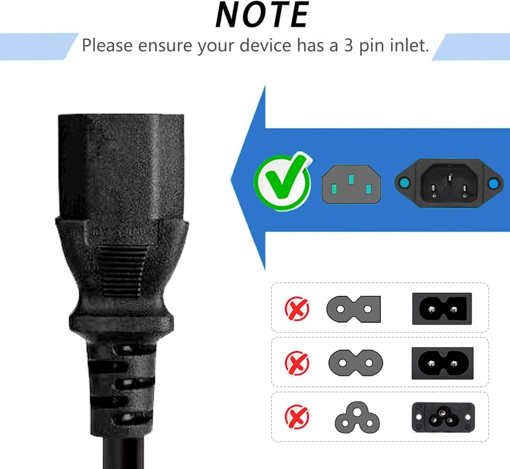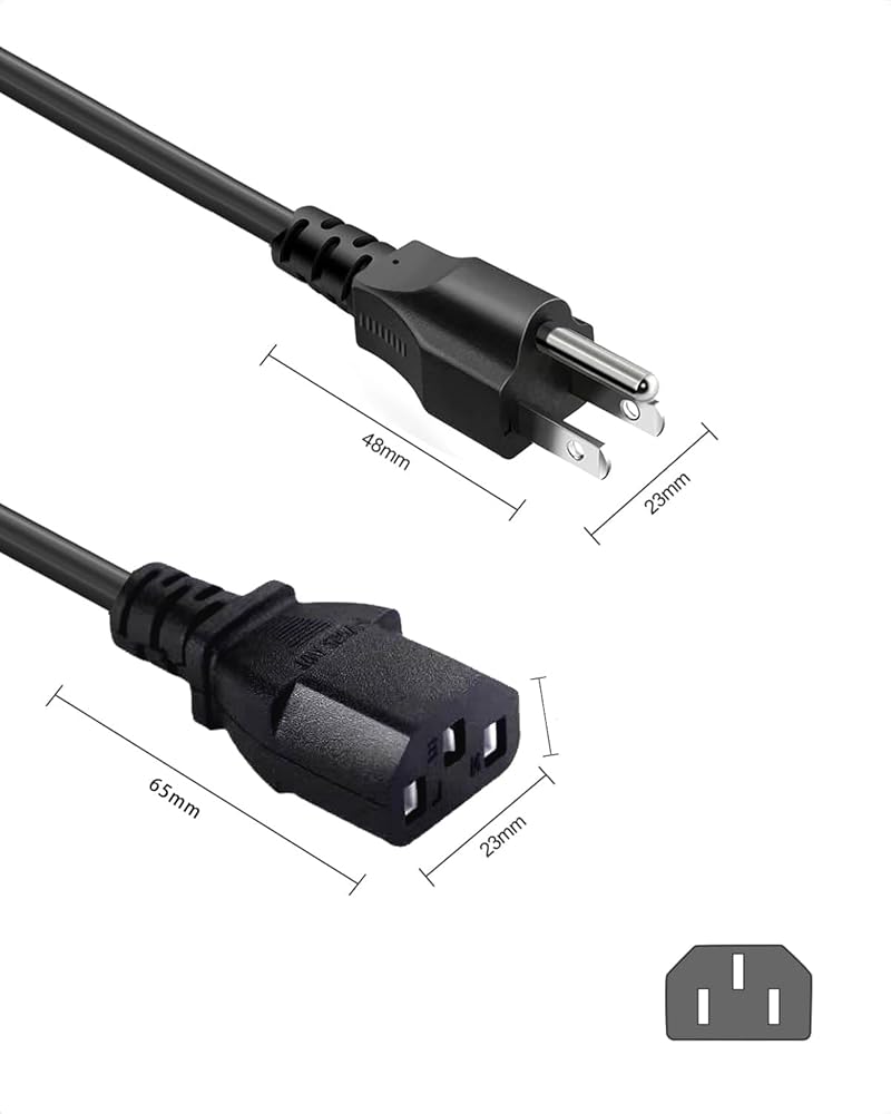 التفاصيل: كابل طاقة 5 أقدام (1.5 متر)، NEMA 5-15P إلى C13، 3*0.824 مم² (18AWG)، 125 فولت 10 أمبير (كحد أقصى)، مادة السترة: PVC، اللون: أسود