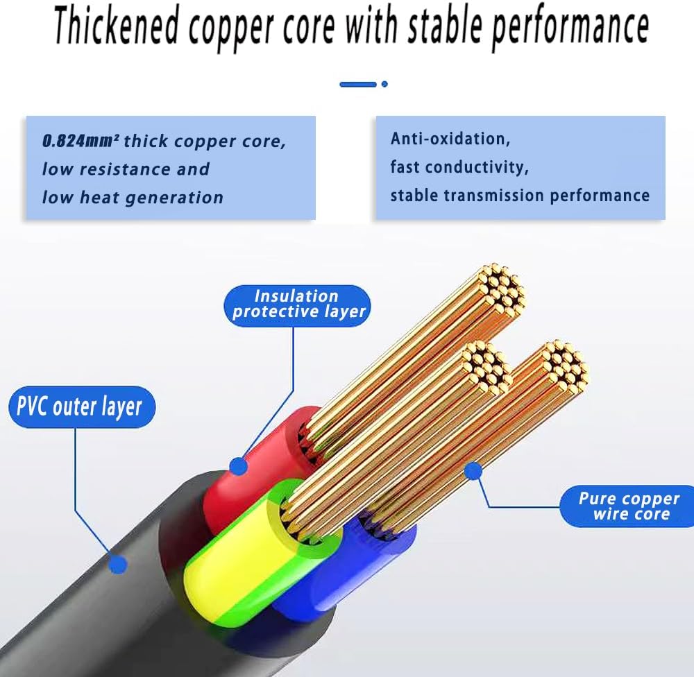 حماية السلامة: اختبار صارم (مدرج في قائمة UL). مقاوم للانحناء، ومقاوم للحرارة، ومثبط للهب، مما يمنحك حماية كاملة للسلامة الكهربائية. تتيح لك استخدام جهازك براحة البال